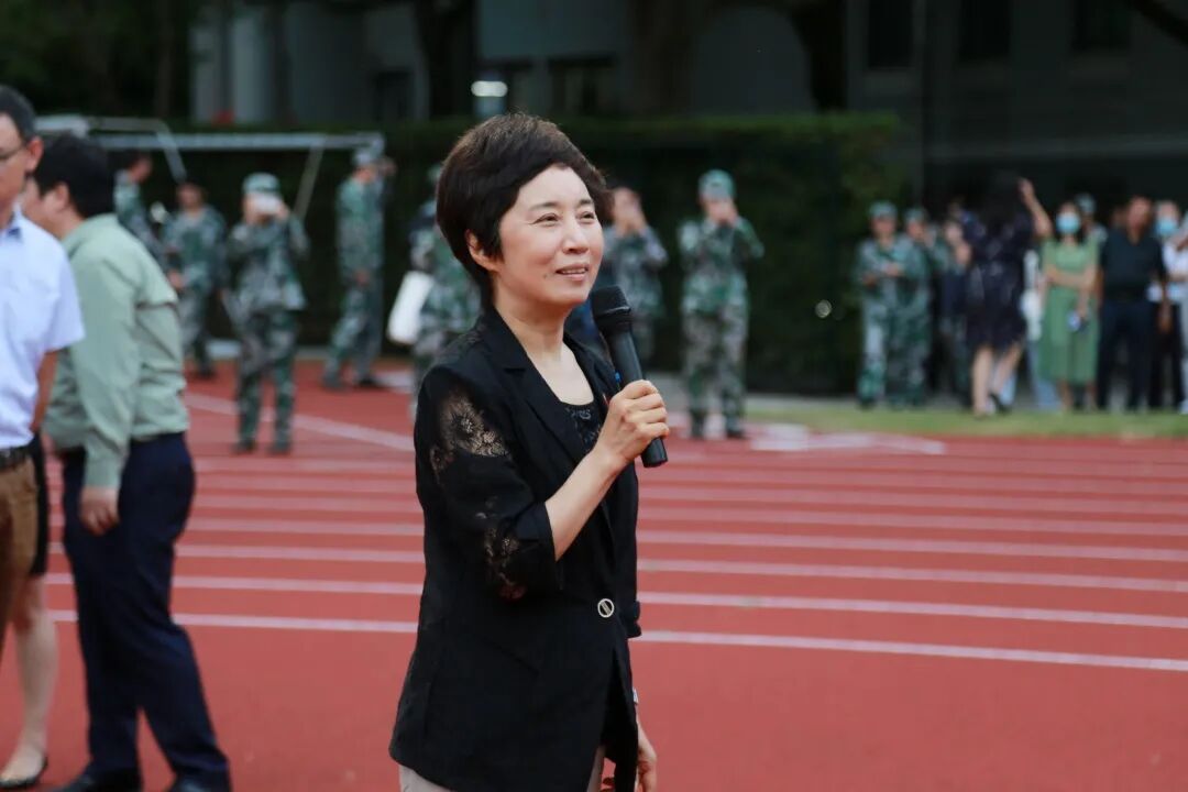 在南区体育场现场,辅导员和学生代表纷纷表达军训感想和期待。“提前给你们点赞。”焦扬表示,在同学们身上看到复旦大学学生应有的模样,看到了复旦人的昂扬斗志,看到了团结、服务、牺牲的复旦精神在新时代发扬光大、在复旦学子身上延续。她对同学们表示赞赏,感到欣慰。“同学们要按照承训教官要求,一鼓作气,圆满完成军训会操任务,向党和人民、向克服困难为大家作军事训练的部队教官们交上一份满意的答卷。”