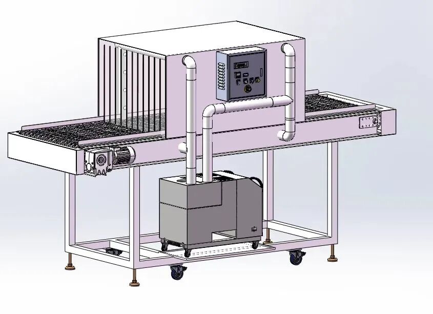 “在符合消毒技术规范的基础上,安全高效、快速落地是我们本次研发的核心要点。”张天资介绍,“考虑到物资大多是纸箱包装,如果直接喷洒消毒水,容易打湿包装且非常浪费,我们采用了超声雾化的方案。消毒液被雾化成10微米左右的颗粒,可以很好地附着在物体表面,当物品离开消毒仓之后消毒剂还能继续起作用,不仅提高消毒效率还保障了效果可靠。”