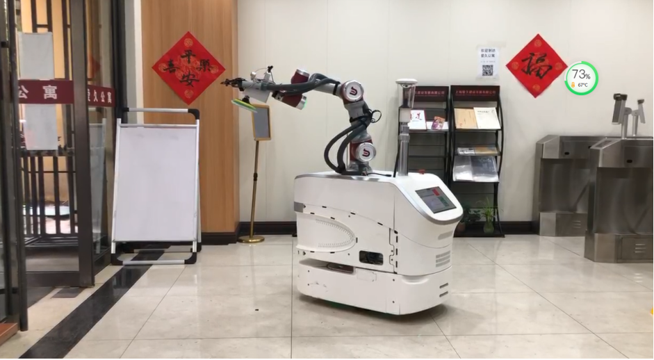 “从遥控方式、自主建图方式,增加了远程视频监控的操控机制,迅速开发适应个性化外卖病毒消杀、保障人的安全健康的AMR-双臂机器人。为了便于操作,设置了两种模式,一种是简单化操控的手动模式,另一种则是远程视频指挥的遥控模式。双管齐下,先让使用者快速上手,再逐步探索出机器人的科技感,即自主智能化能力。”齐立哲说。