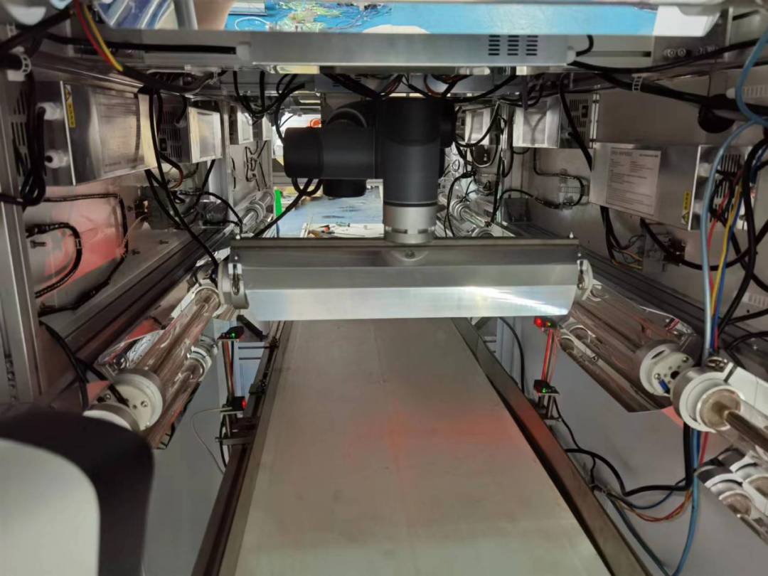 据姚其老师介绍,滚轴式六面均匀紫外线物表消杀机既要保证效率,又要保证人体安全。中部采用254 nm峰值波长紫外线,经过精准光学设计、模拟,实现内部均匀、快速消杀,且无外泄光;两端为222nm峰值波长紫外线,有效解决物品前后面消杀时间短问题,同时避免了对人的潜在伤害。