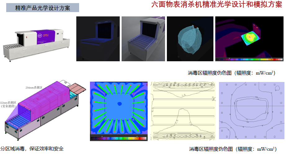 对于紫外线的应用,在保证杀菌效果同时,更重要的是其光生物安全性。姚其团队基于自身在光健康、光医疗方面多年的积累,采用四大光学技术提升紫外光杀菌效果:精准光学设计、空间精准辐照度设计、光剂量定量评估、紫外线可视化技术,并保证光生物安全。