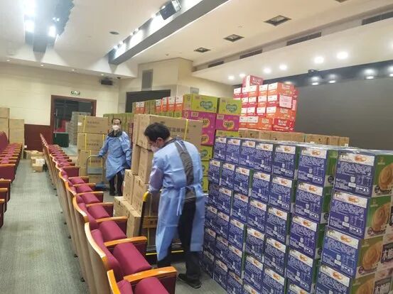 295箱板蓝根,100箱水果,1071份个人消杀物品,84箱牛奶……源源不断的物资,在老师们的努力下,很快送达邯郸校区一百多名留校教职工手中。