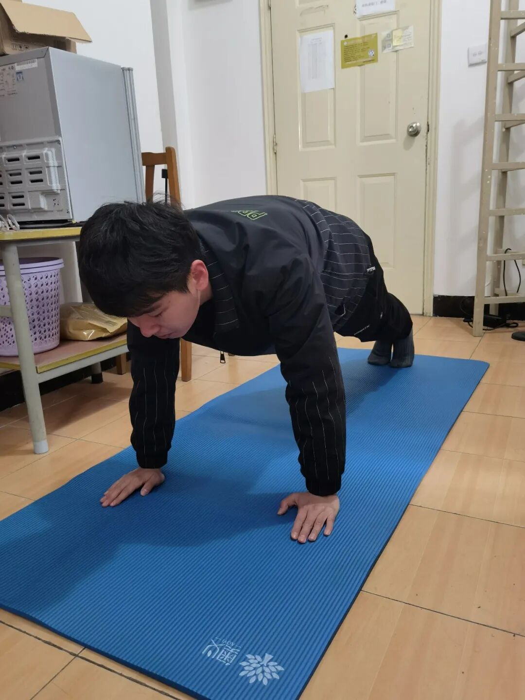 陈禹潜在寝室做运动