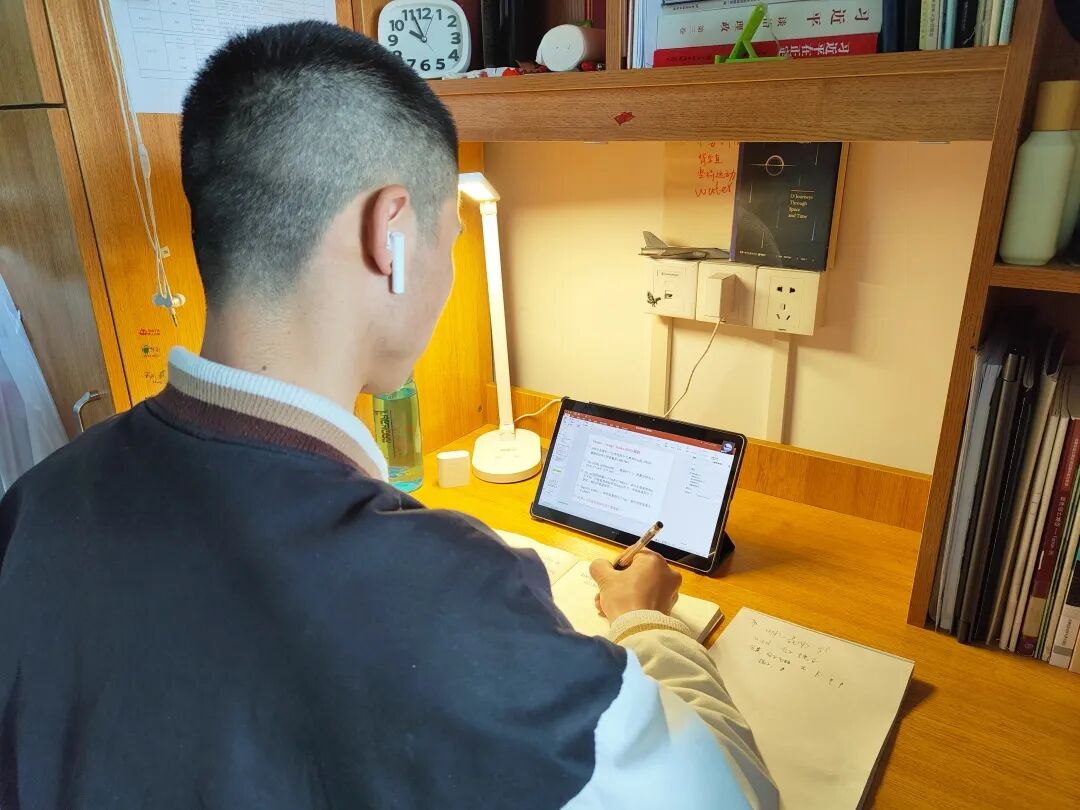 上网课时,刘代能会把桌面收拾整洁干净,听课时坐姿端正,同时认真做笔记。“老师们都很认真地备课,疫情都没能阻挡他们上课的激情,所以作为另一个终端,我们学生上课也要付出激情才对啊!”