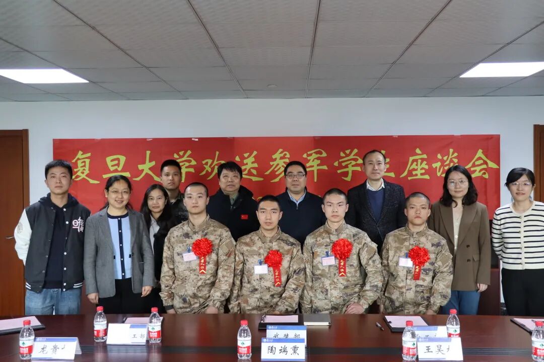 昨天上午,复旦大学欢送参军学生座谈会在杨浦区民兵训练基地举行,校武装部、学工部、医学学工部及新兵所在院系老师与四位男兵进行了座谈,还有一位女兵将从嘉定基地出发。