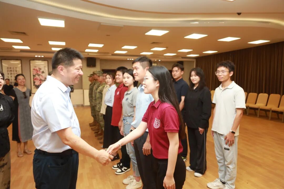8月26日,金力同志在本部邯郸校区篮球场慰问军训教官和学生,勉励同学们磨练意志、顽强拼搏,上好军训这堂“必修课”,在历练中收获成长。汪源源同志、钱海红同志陪同慰问。
