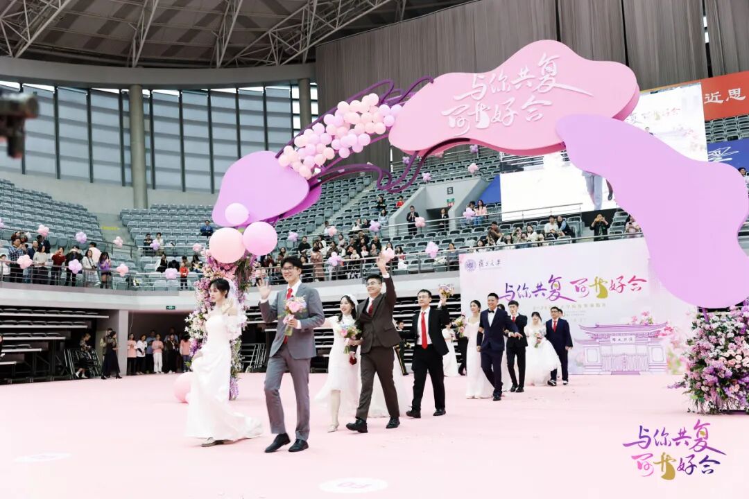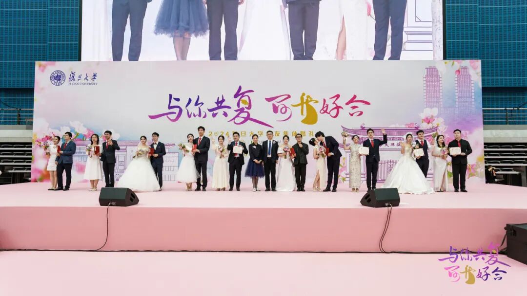“你们志同道合的初心、纯真默契的情感,是母校120周年生日序曲中最浪漫的音符”,复旦大学校友集体婚礼主婚人、常务副校长许征表示。