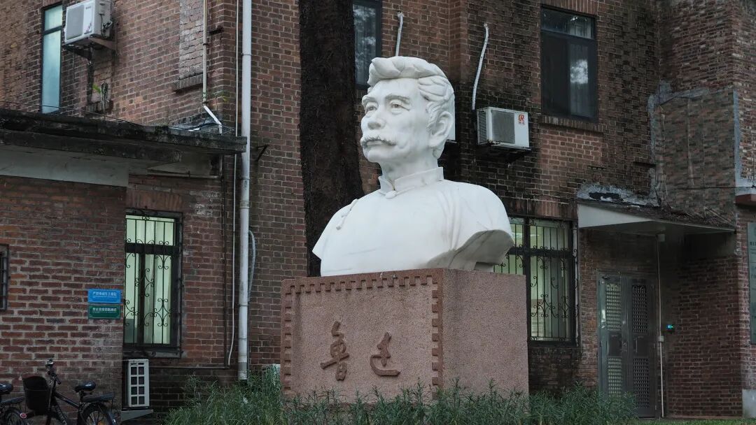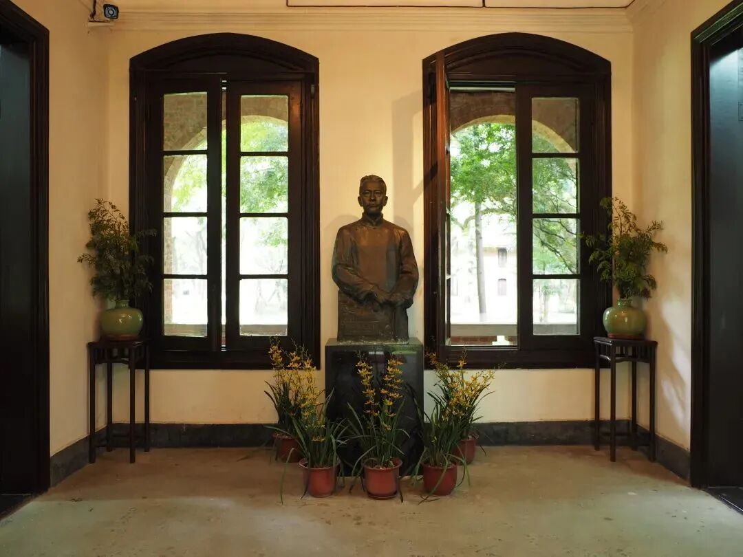 看到陈寅恪雕塑上的花了吗!(李锦洋摄)