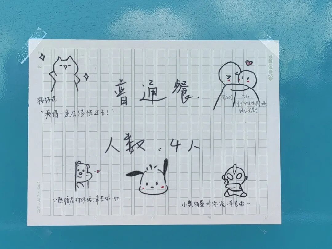贴着可爱的小纸条说明人数