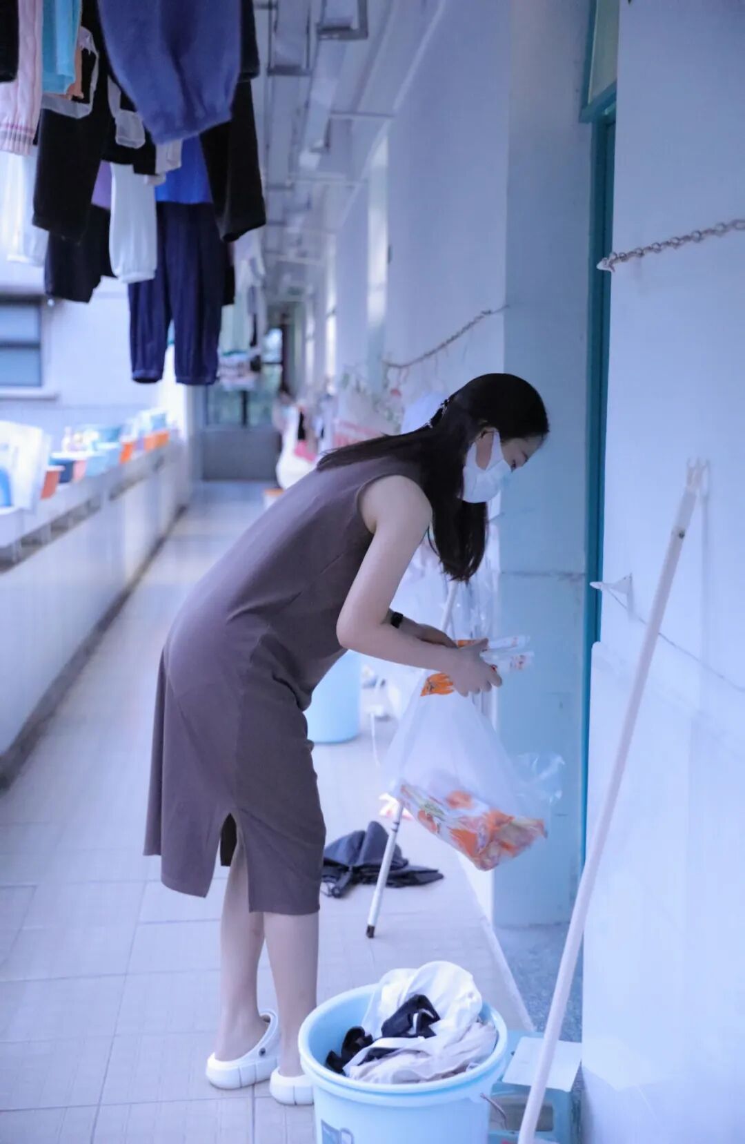 走进阳台洗漱看到