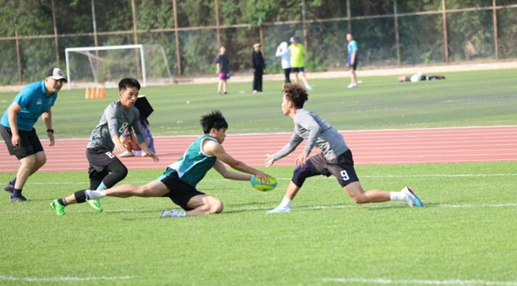 在刚刚结束的第12届首都高等学校触式橄榄球锦标赛中,我校橄榄球队大比分领先对手,荣获甲组冠军。