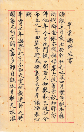 古代的读书人,大都善写小字,朝考状元、翰林,尤注重书法。小楷平和简静、质朴自然,法度严谨、刚强雄健,大字紧密无间,小字宽绰有余。植物保护学院昆虫学系博士毕业生王亮的这篇《毕业谢师友书》,以毛笔小楷书写真诚,一笔一划都是内心的激动与感恩,将尊师重道的优秀传统体现得淋漓尽致。![]()