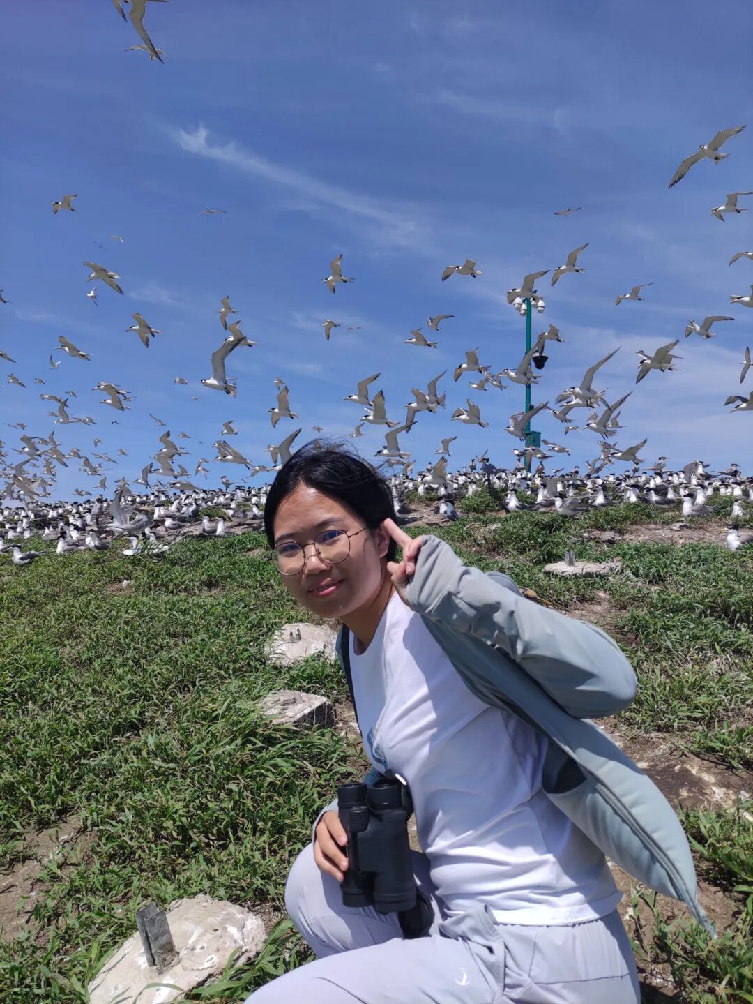 2022年的夏天,机缘巧合,孙嘉徐参与了当年的“燕鸥环志”活动,第一次登上了鸟岛:“那年我上岛接触到许多热爱鸟类的老师和朋友,相处的时间里让我对观鸟的感悟发生了巨大的改变。”