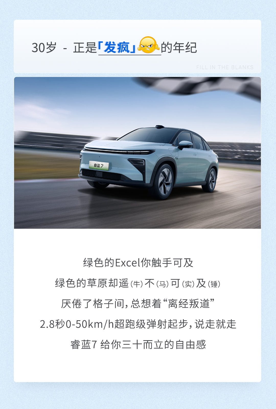 推荐:睿蓝汽车通过多个平级「点击展开」不同年纪背后相应的汽车各个细节的介绍,借此宣传睿蓝汽车,吸引读者即刻订购。