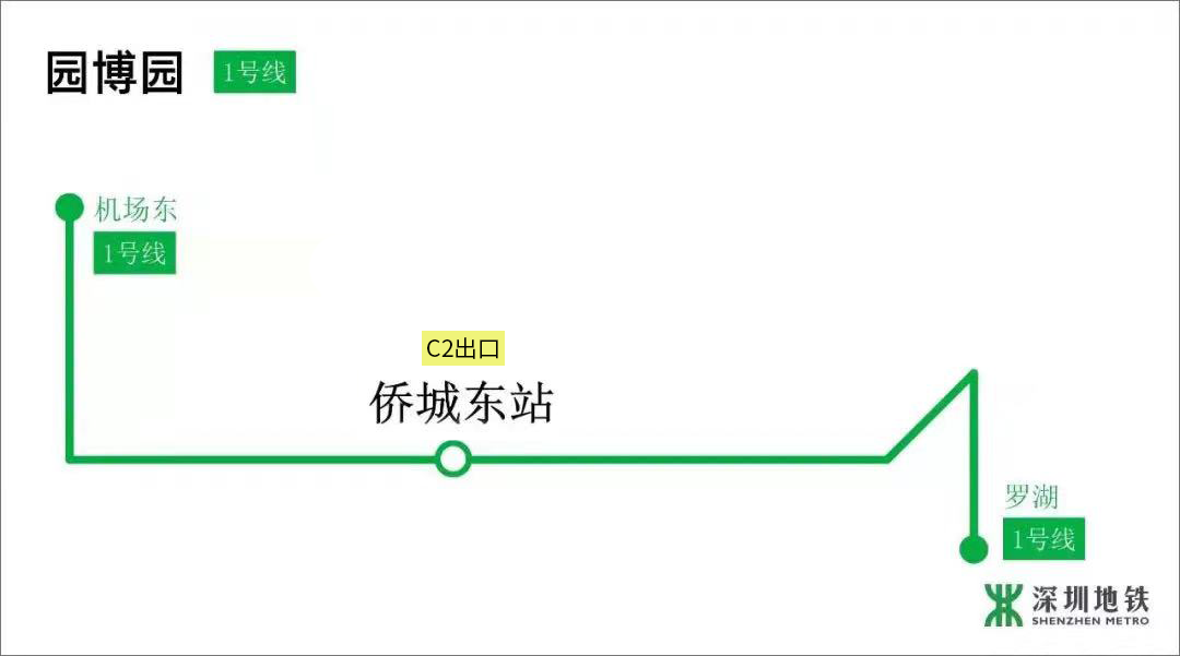 地铁出行指引:1号线侨城东站,C2出口+500米
