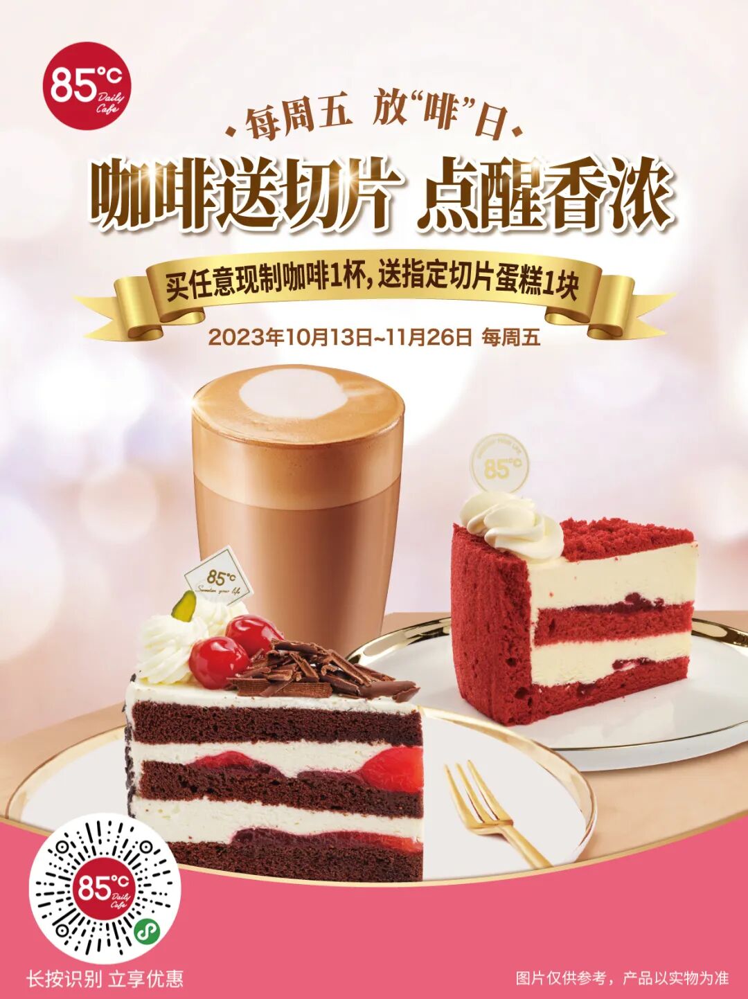指定切片蛋糕包括:安格拉斯蛋糕、巴斯克蛋糕、白雪芝士蛋糕、草莓奶酪蛋糕、醇醇黑森林蛋糕、醇醇红丝绒蛋糕、浪漫巧克力蛋糕、芒果杯提拉米苏、柠檬芝士蛋糕、帕玛森乳酪蛋糕、起士森林蛋糕、巧克力味拿破仑蛋糕、巧克力味奶酪慕斯蛋糕、生椰拿铁蛋糕、提拉米苏杯蛋糕、杨枝甘露蛋糕。具体品项以各门店实际出货为准。