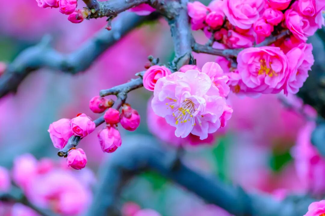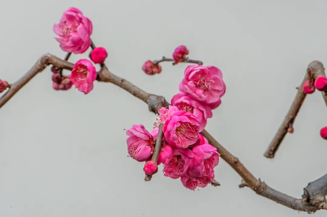 这些梅花或含苞待放