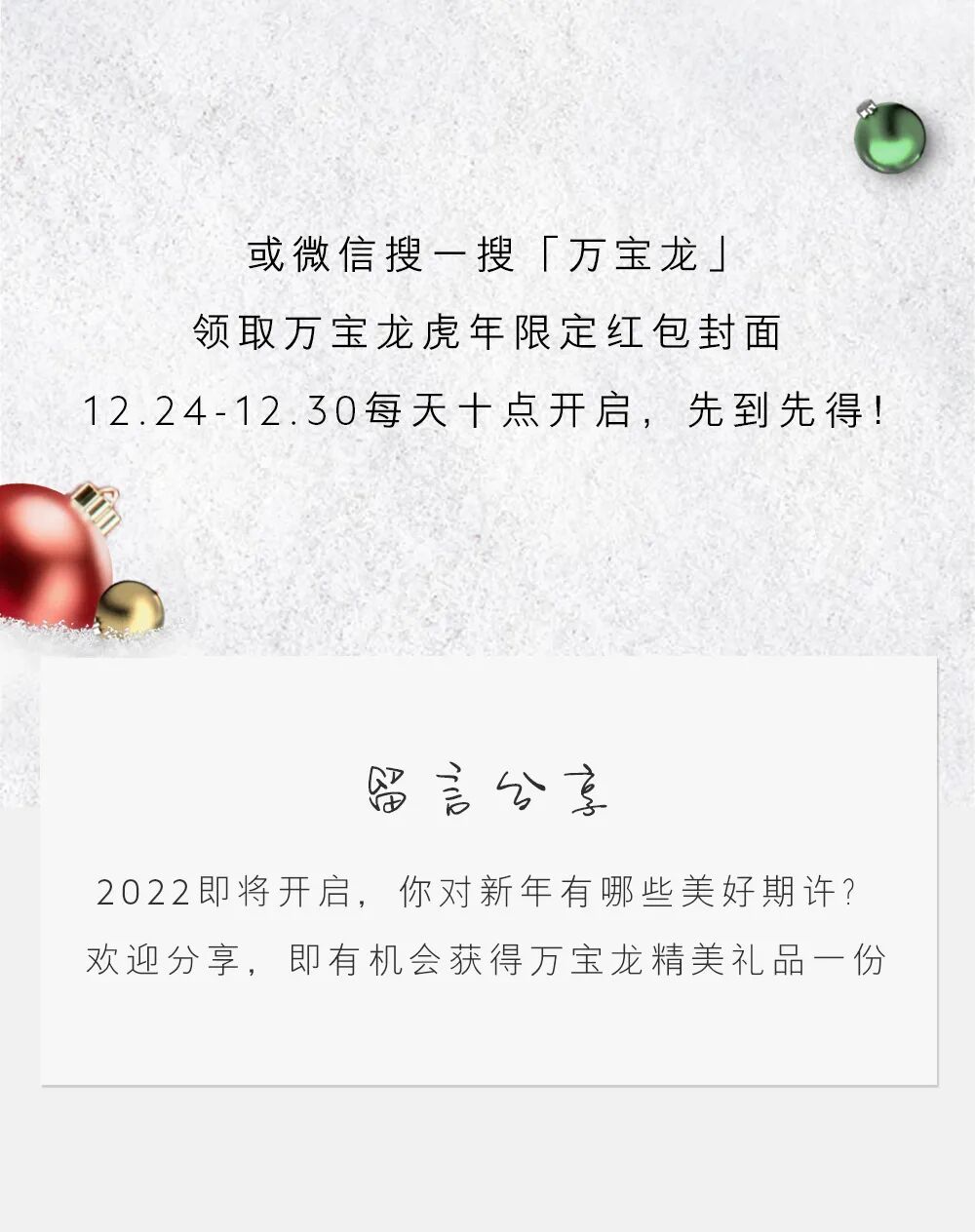 推荐:在圣诞钟声敲响之际,点击万宝龙专属圣诞树一起开启盲盒,介绍万宝龙产品的同时,吸引大家领取虎年限定红包封面。