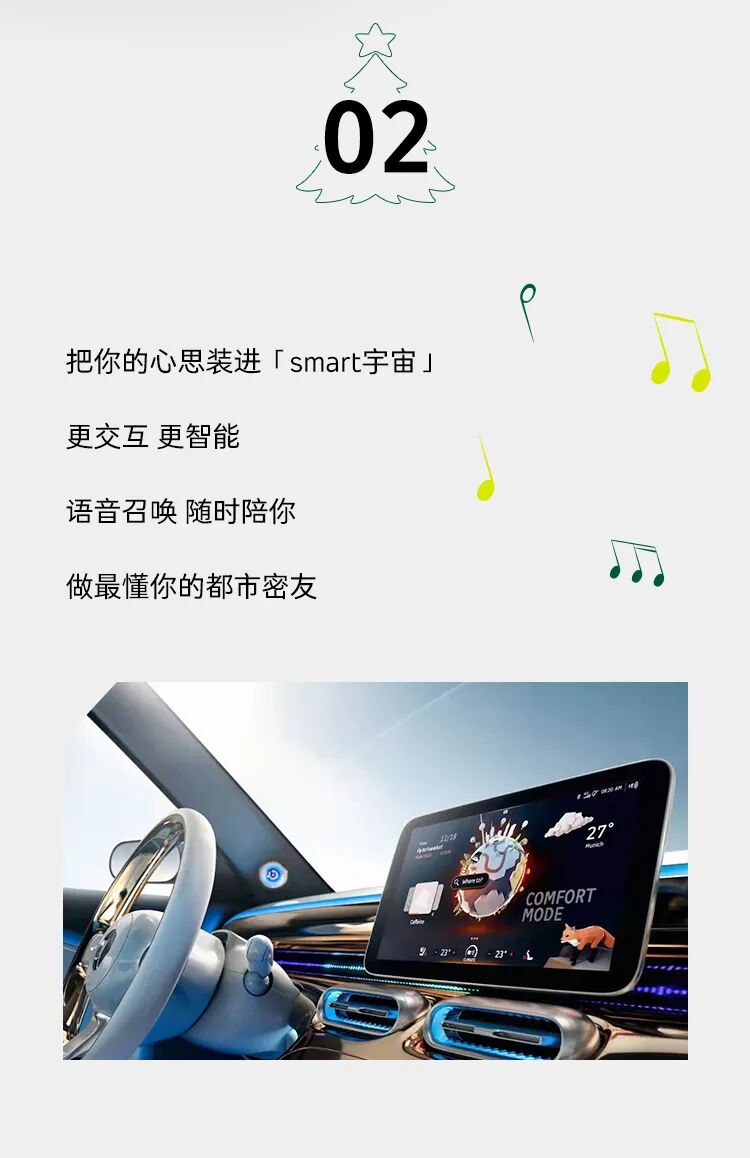 推荐:「点击切换图片」查看圣诞愿望,借此宣传smart汽车和超高配置,吸引大家购买。