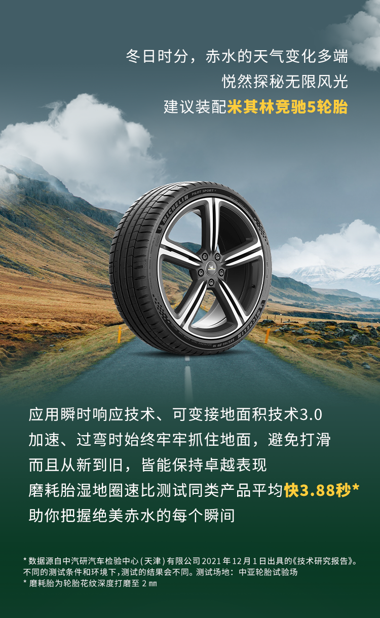 关键词:轮胎相关、米其林、米其林乘用车轮胎、米其林竞驰5轮胎、湿地制动、赤水、耐磨、行车安全