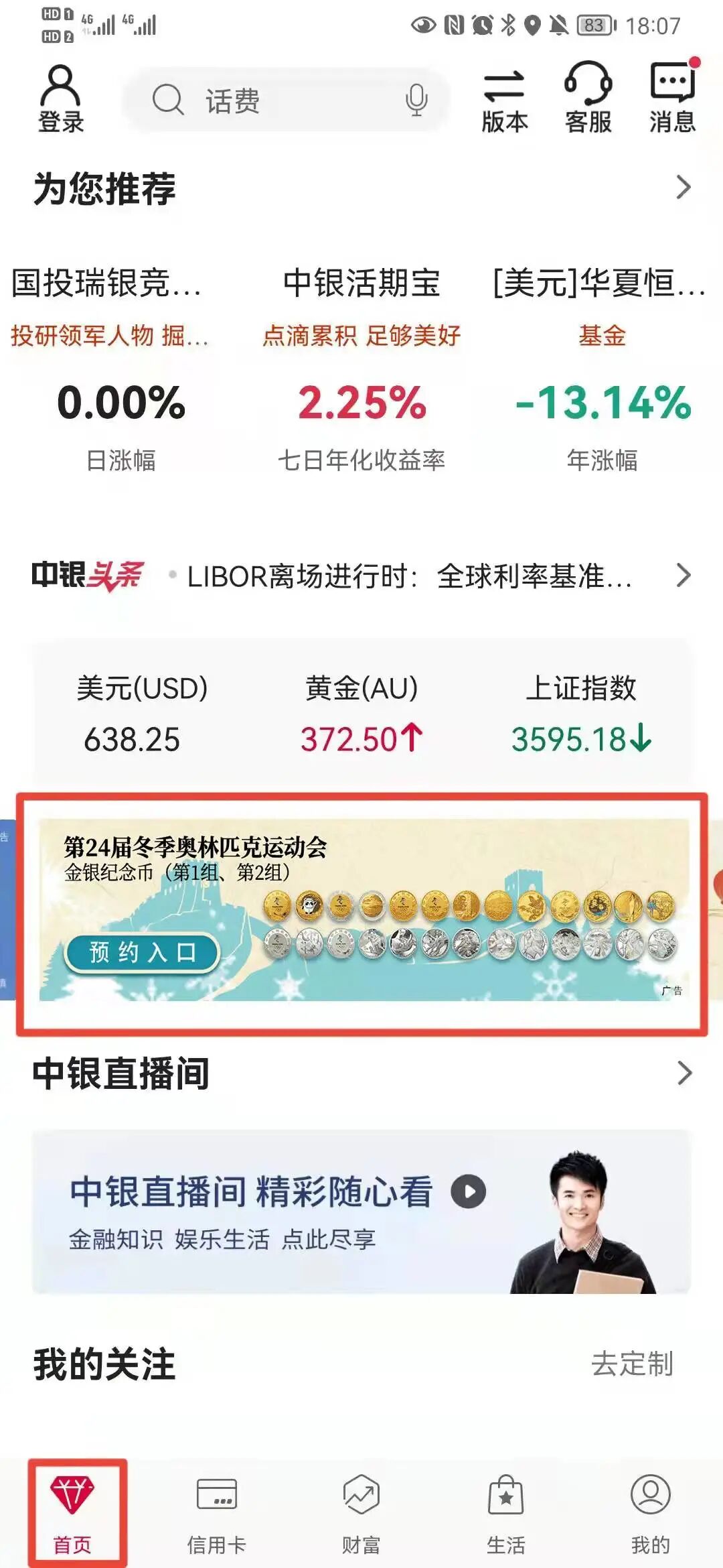 登录中国银行APP,在菜单栏 “首页”频道 ,下滑至 “轮播广告” 点击进入即可预约。