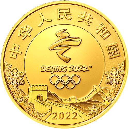 该纪念币正面图案为第24届冬季奥林匹克运动会会徽,衬以长城、雪花等元素组合设计,并刊国名、年号。