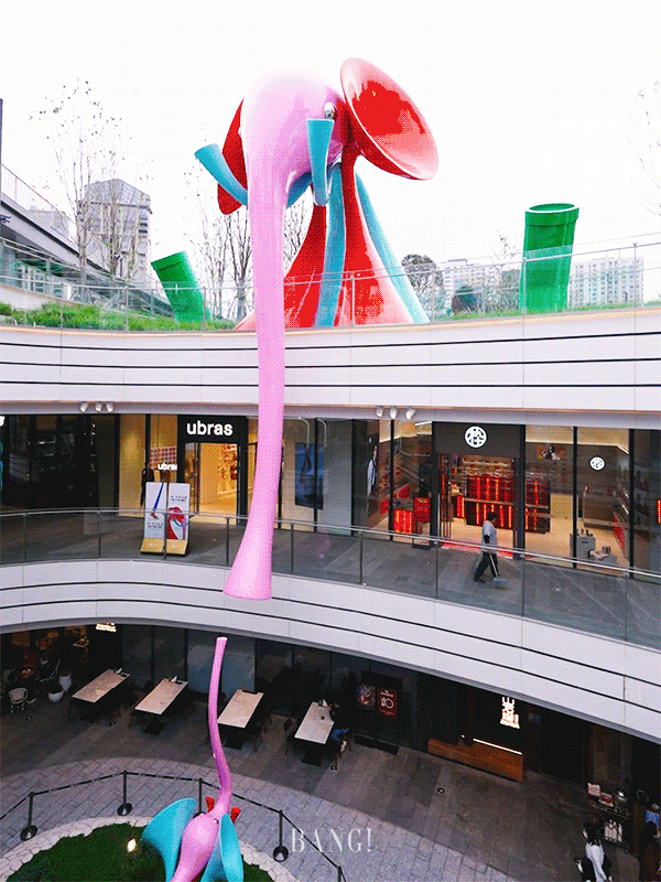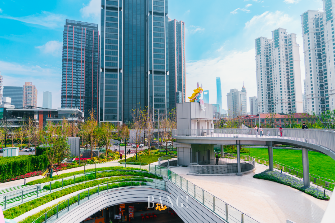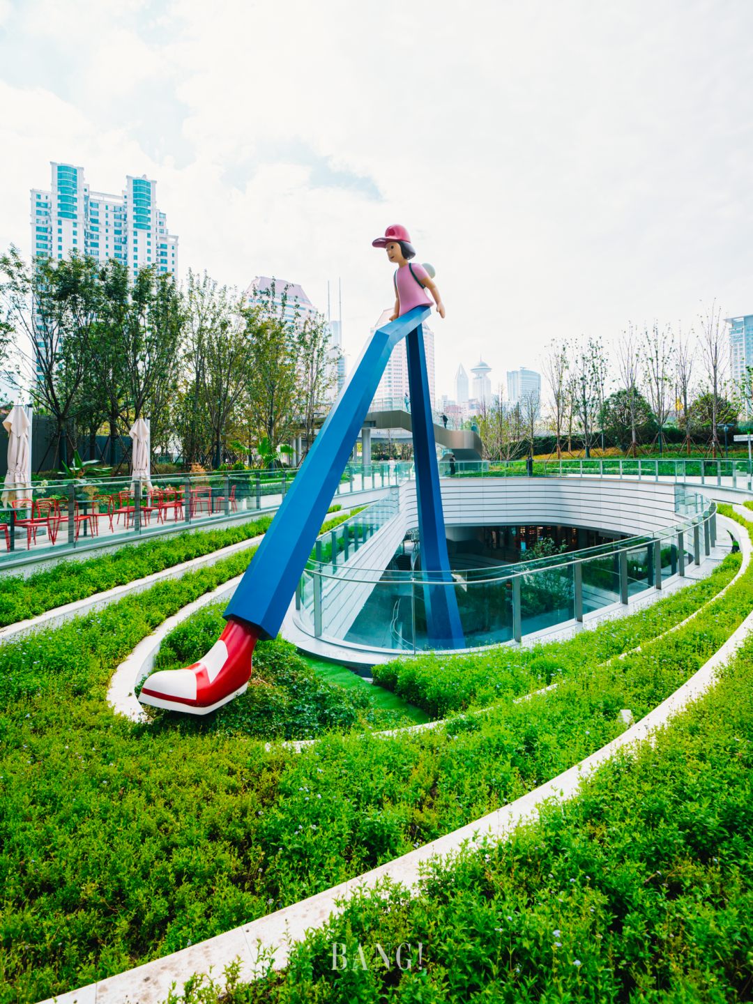 值得一提的还有这里的艺术气息,在试营业期间就火出圈的两个大型户外永久艺术装置「迈上!」、「大象亲子乐团」已经吸引无数魔都潮人前来打卡!