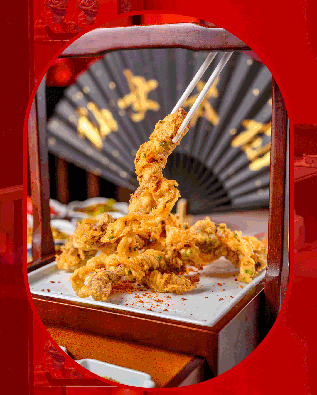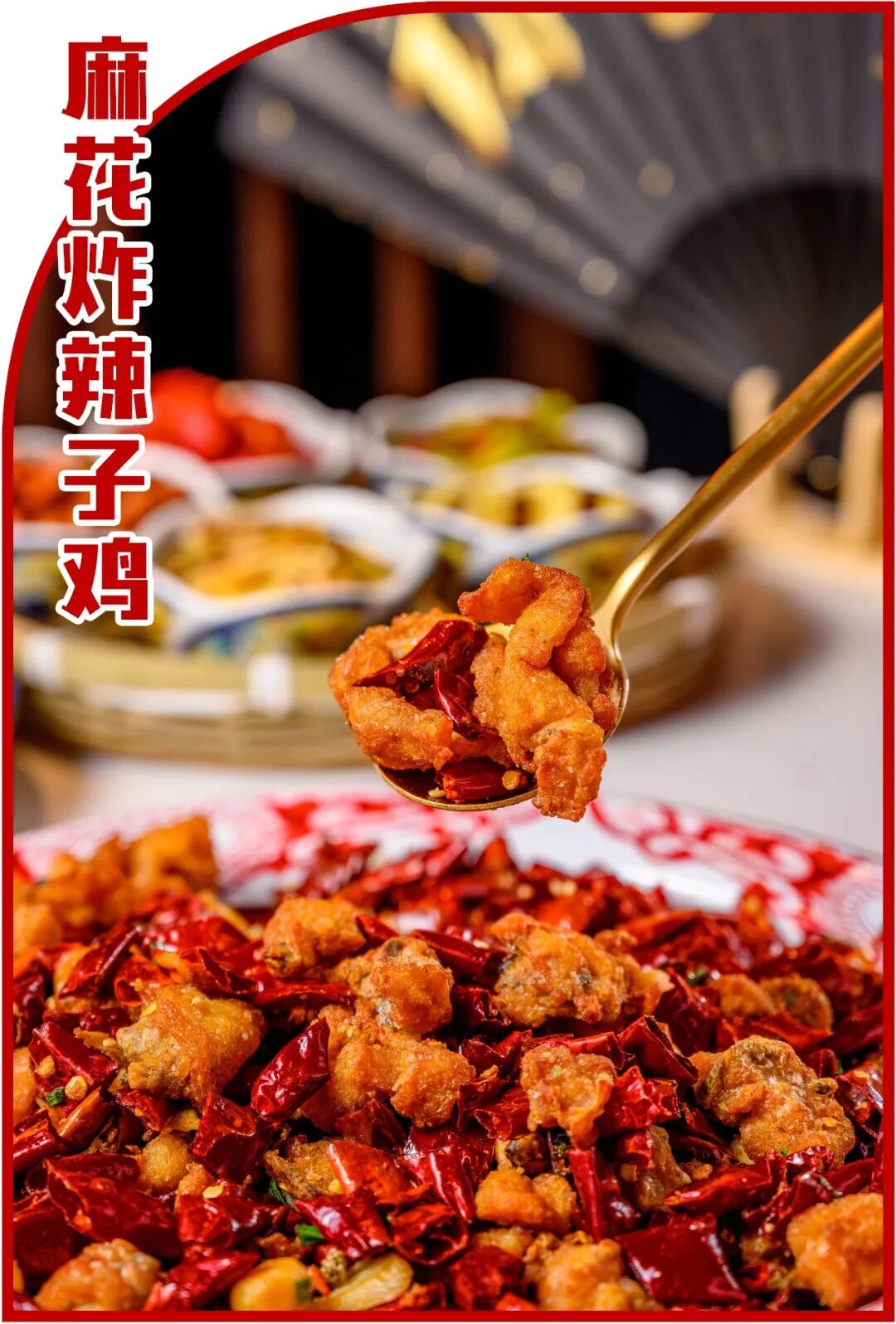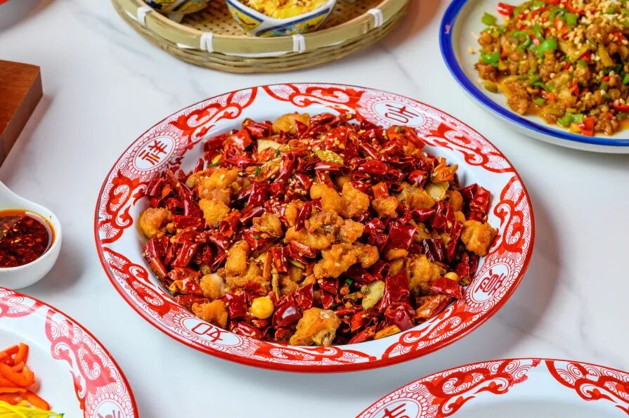 麻花炸辣子鸡端着显脸小、放着占桌子。
