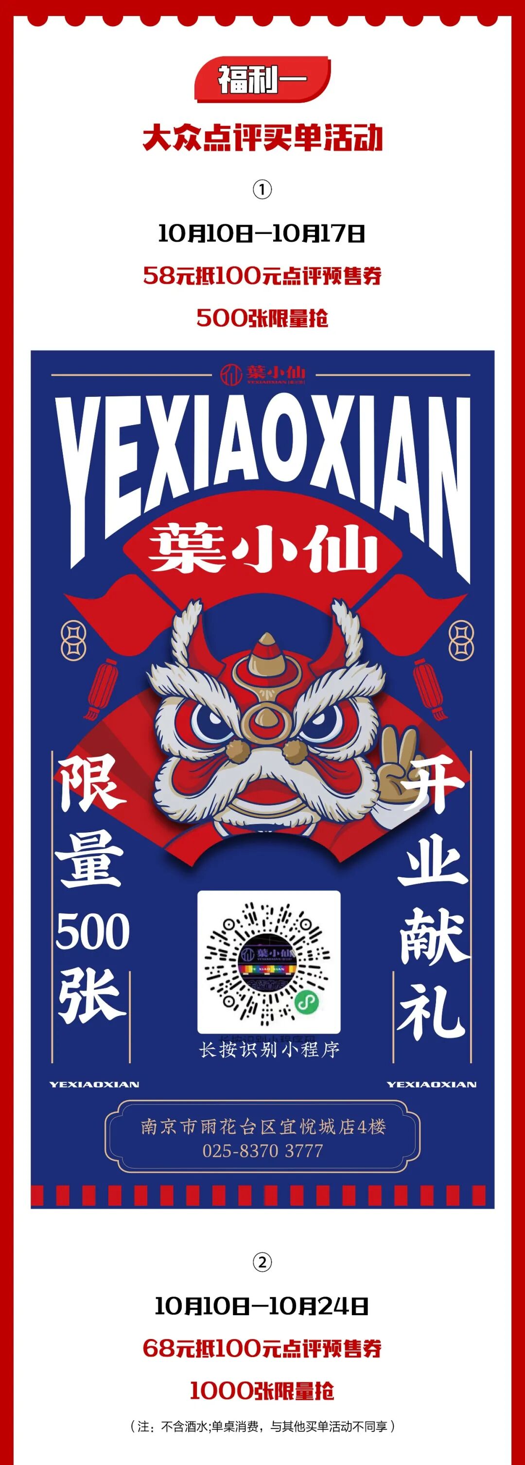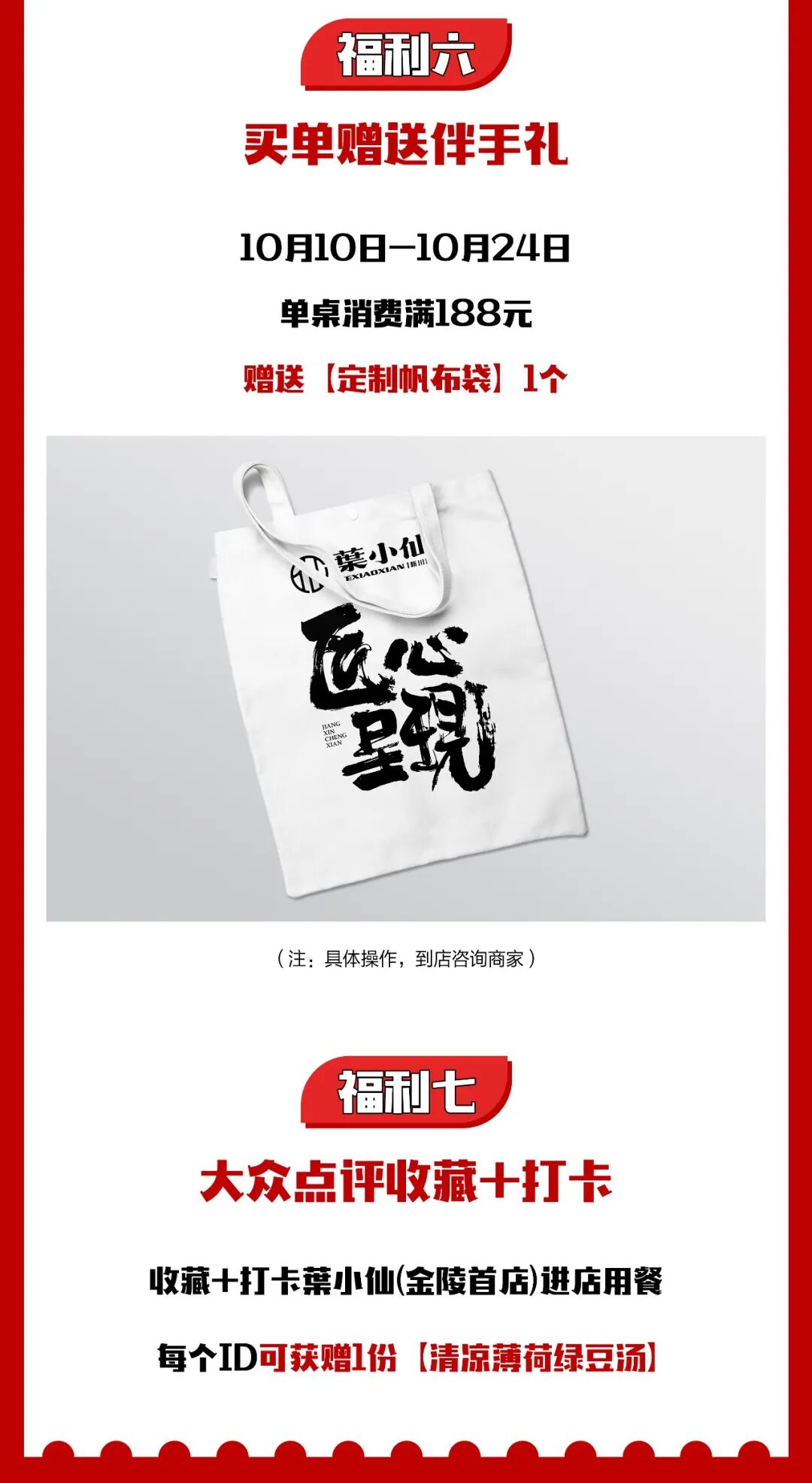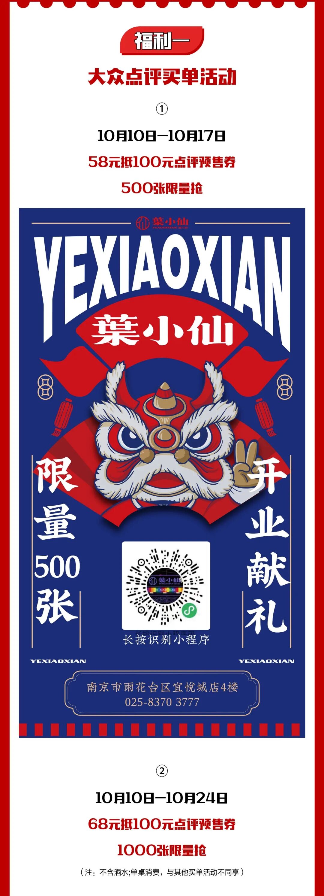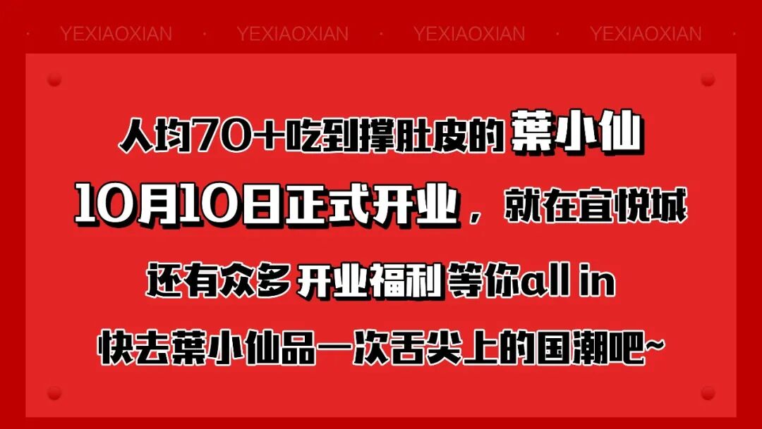 10月10日,葉小仙正式开业,7重福利等你来吃,还不赶紧GET起来~