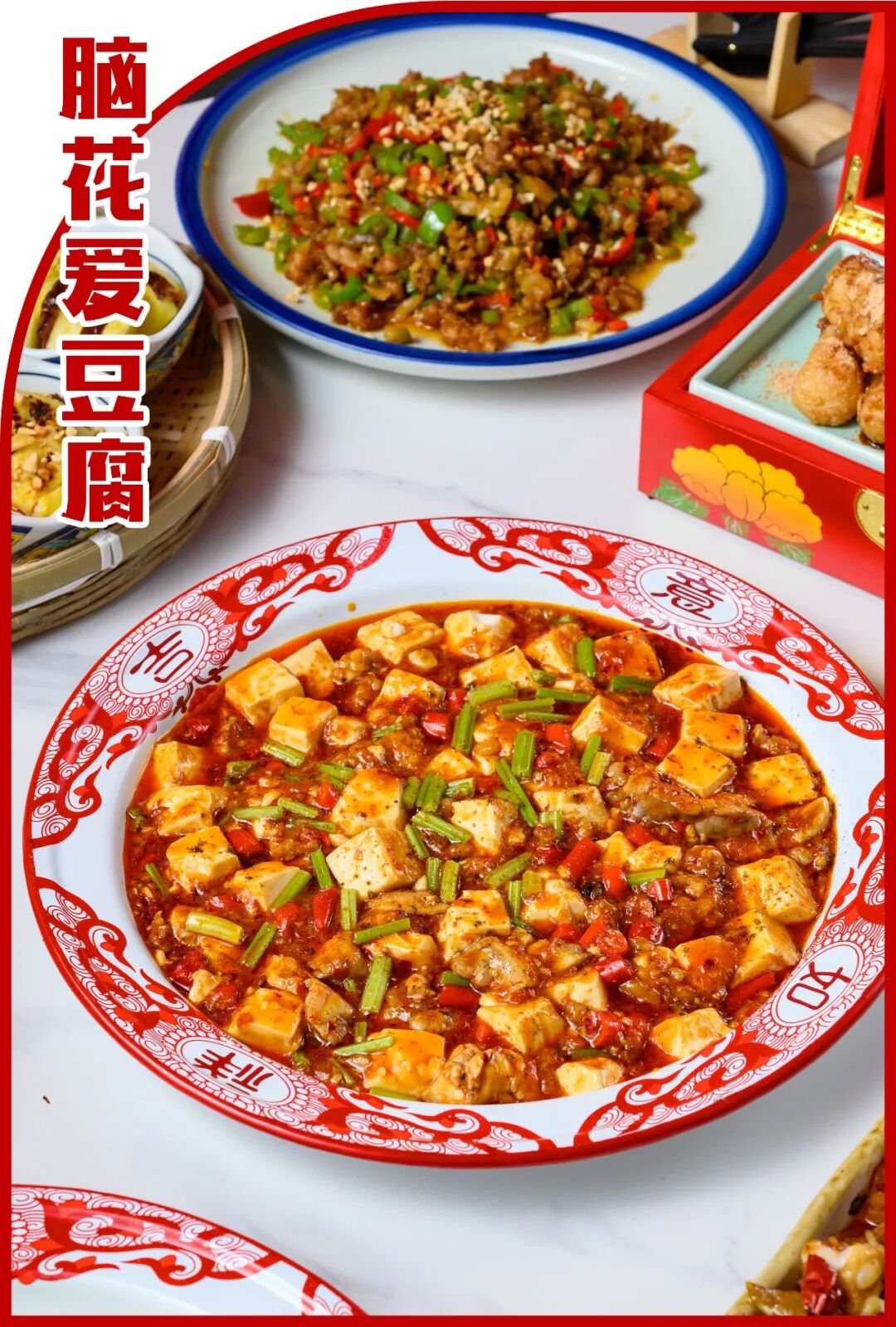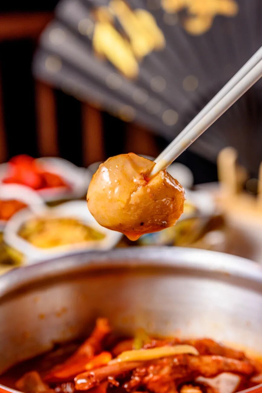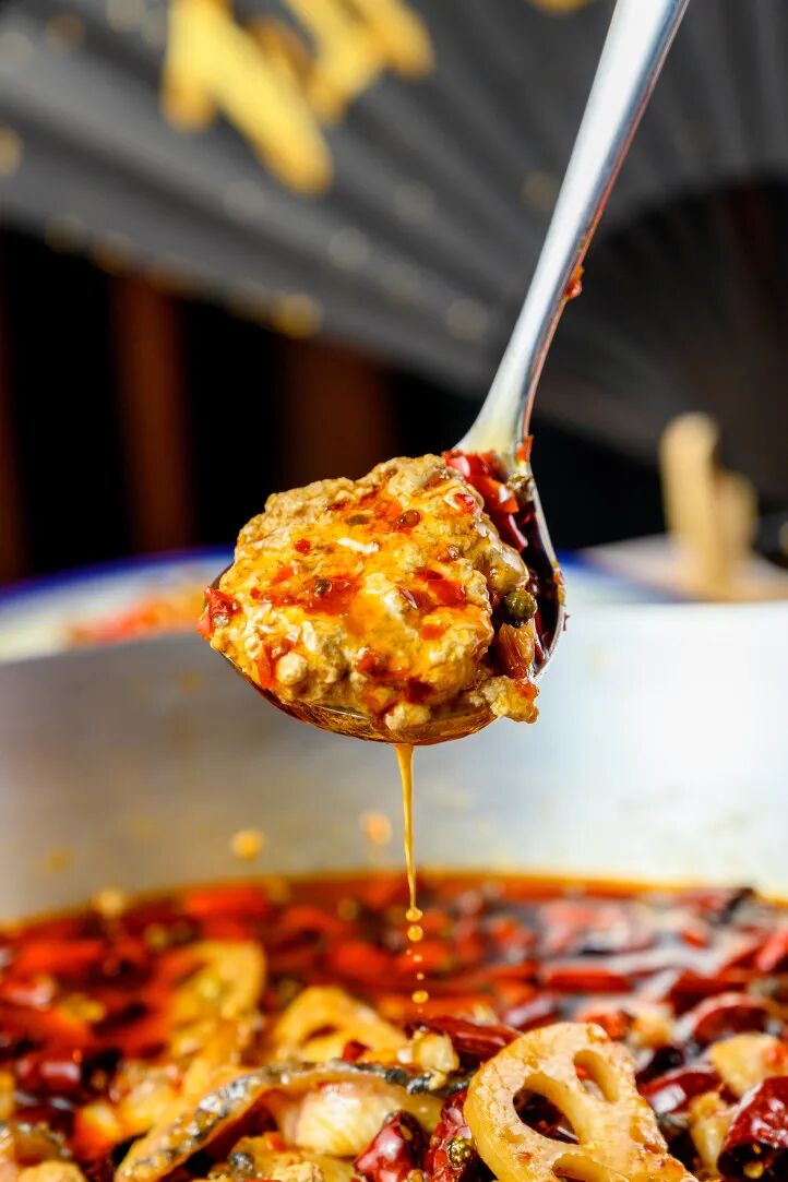 细嫩的豆腐和软糯的脑花碰撞在一起,在花椒和红油的包裹之下,乍一看几乎分不出区别。
