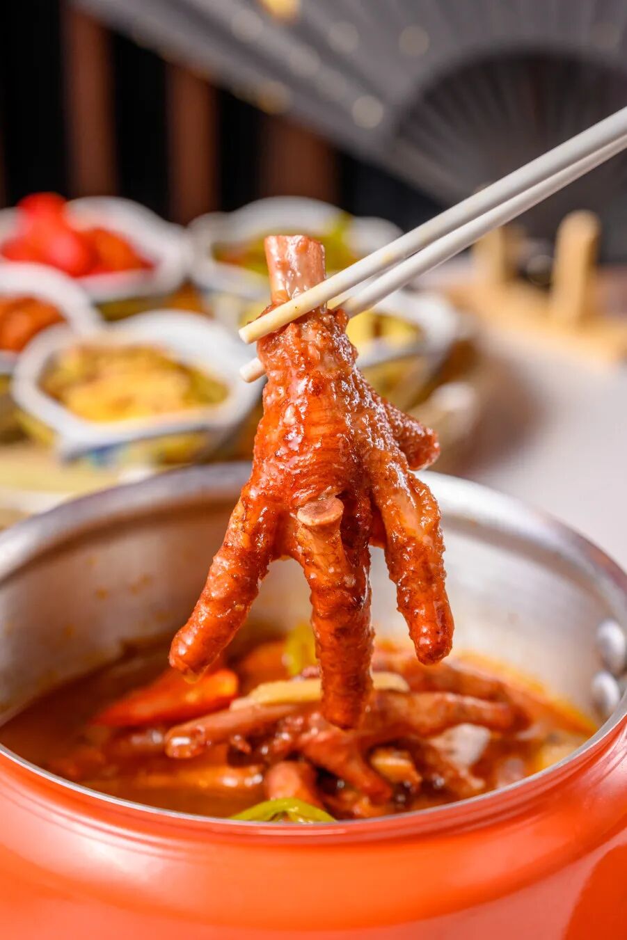 压锅凤爪煮得敲烂,轻轻一抿,鲜香软糯的筋肉就自动和骨头分离开来。