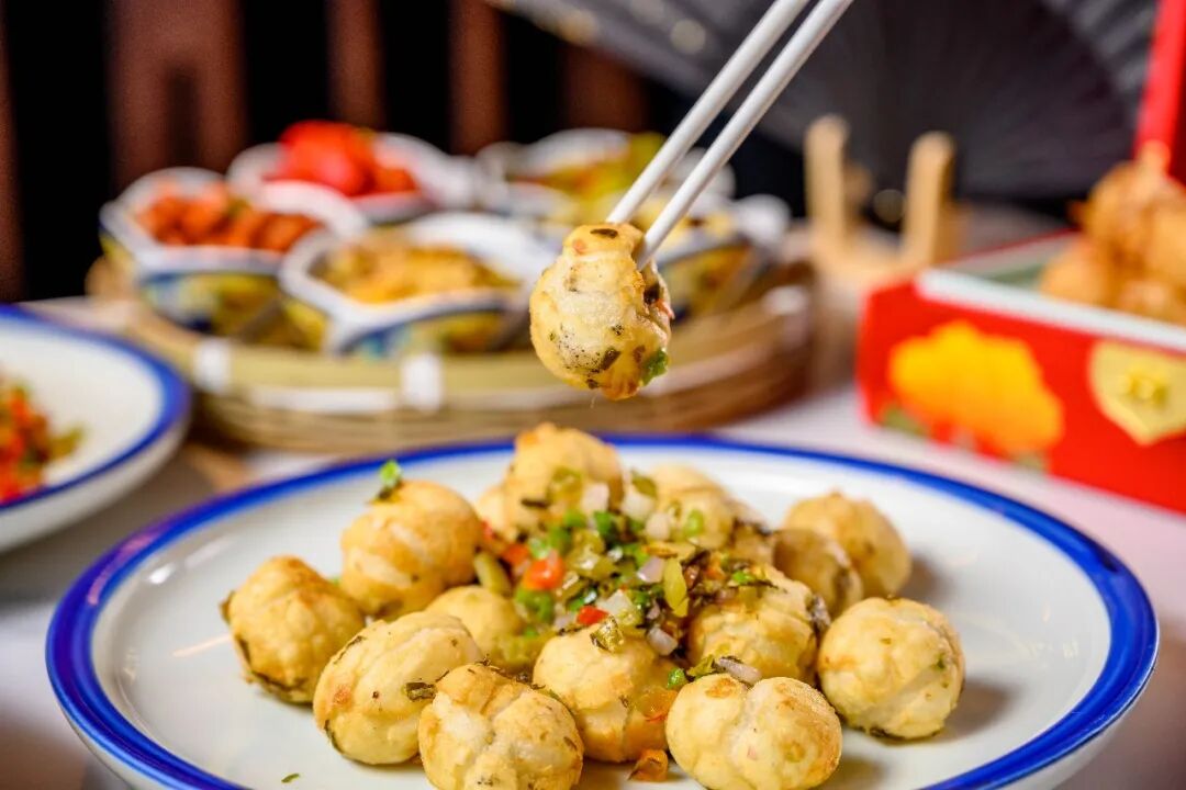 汤圆不煮反用油炸,你吃过咩?油炸的汤圆加上酸菜和辣椒,慢慢煸香煸脆。