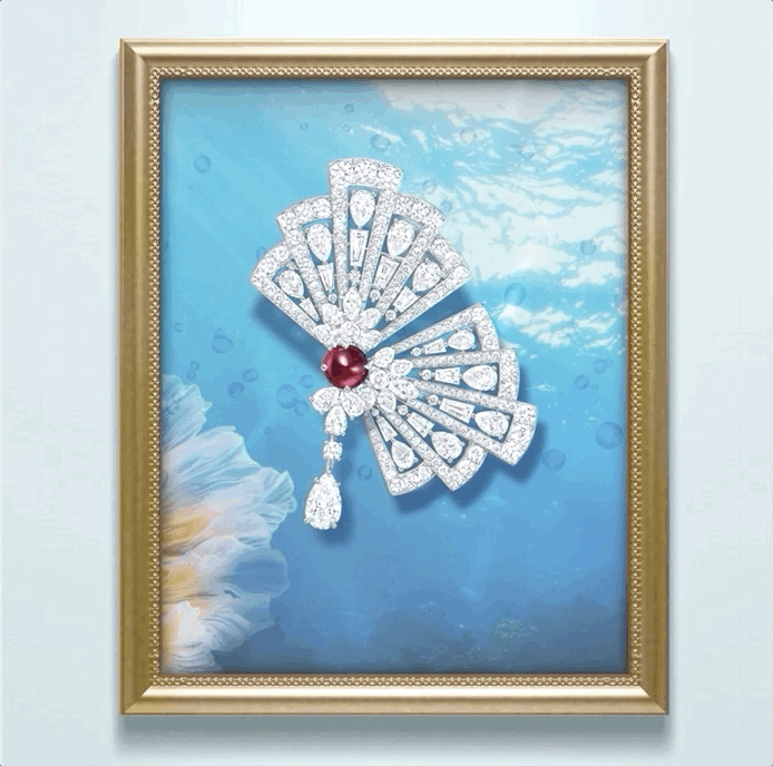 海瑞温斯顿Marvelous Creations高级珠宝系列从陆地上纵身一跃,很快静谧的蓝色湖水就会将你包围,但别怕,在「万物奇迹」的世界里,你能跟鱼儿一般畅游。池塘里,斗鱼利用开合的尾鳍优雅穿梭,棕硬尾鸭优雅地划过水面。而Betta Fish胸针的设计灵感也由此诞生,它可以说得上是这个系列中最精巧复杂的工艺作品。斗鱼的扇形尾鳍采用钻石制作,自由地展开、闭合,捕捉这种生物的动态之美,一颗晶莹红宝石仿佛点睛之笔,赋予了它生机。海瑞温斯顿Marvelous Creations高级珠宝系列