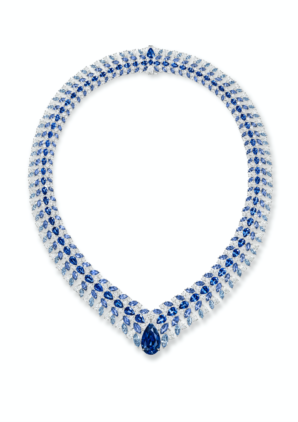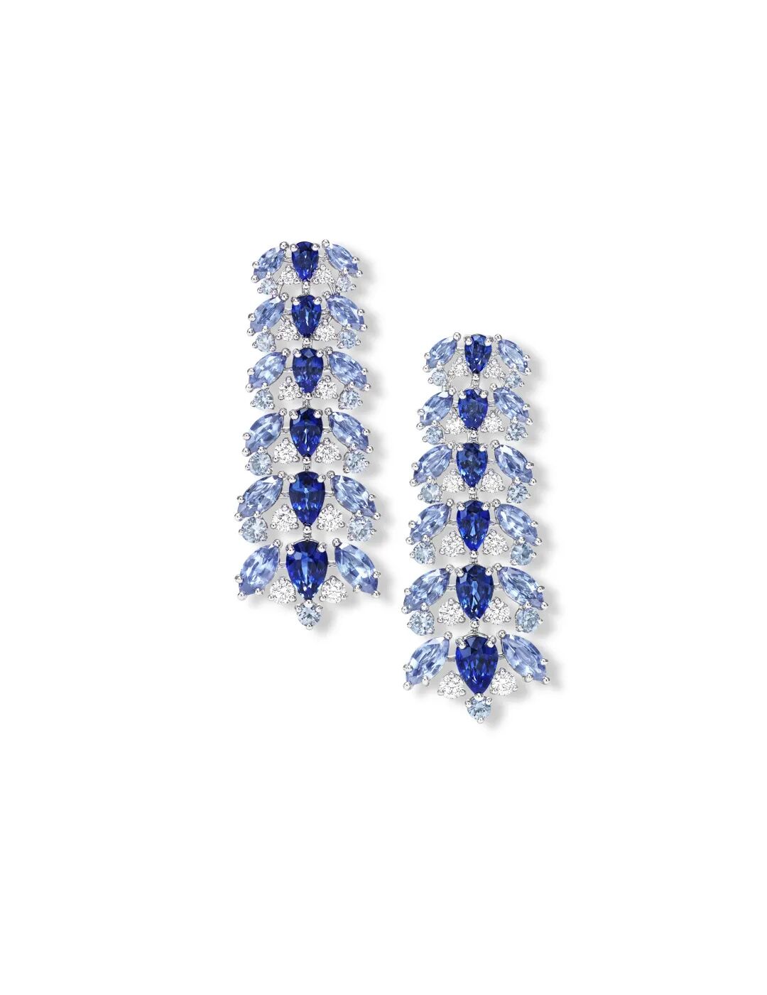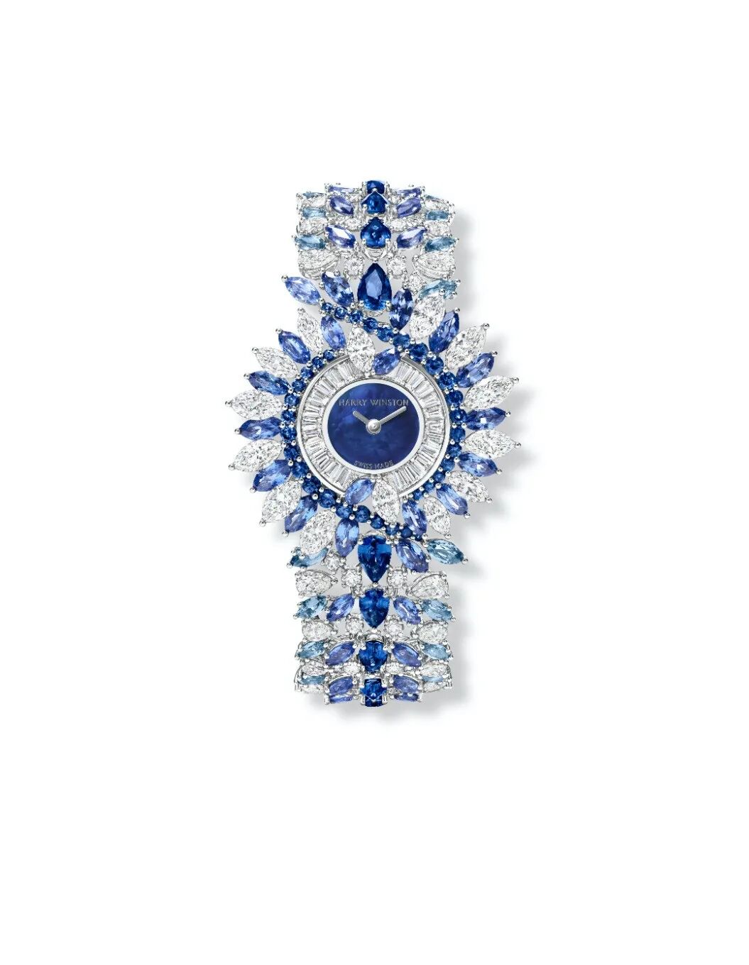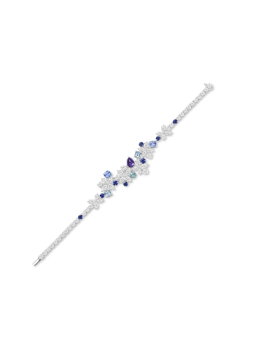 海瑞温斯顿Marvelous Creations高级珠宝系列而Peacock胸针便以祖母绿、蓝宝石和钻石的组合,及粉钻、红宝石、粉色蓝宝石和钻石的组合,分别映衬出孔雀的不同优雅。海瑞温斯顿Marvelous Creations高级珠宝系列珍贵的帕拉伊巴碧玺、紫色和蓝色蓝宝石、海蓝宝石以及钻石,呈现于Purple Marquesa项链、手链和耳环之上,随着身体摆动,珍稀宝石绽放出不同的光泽,就连蝴蝶都对它迷恋不已。