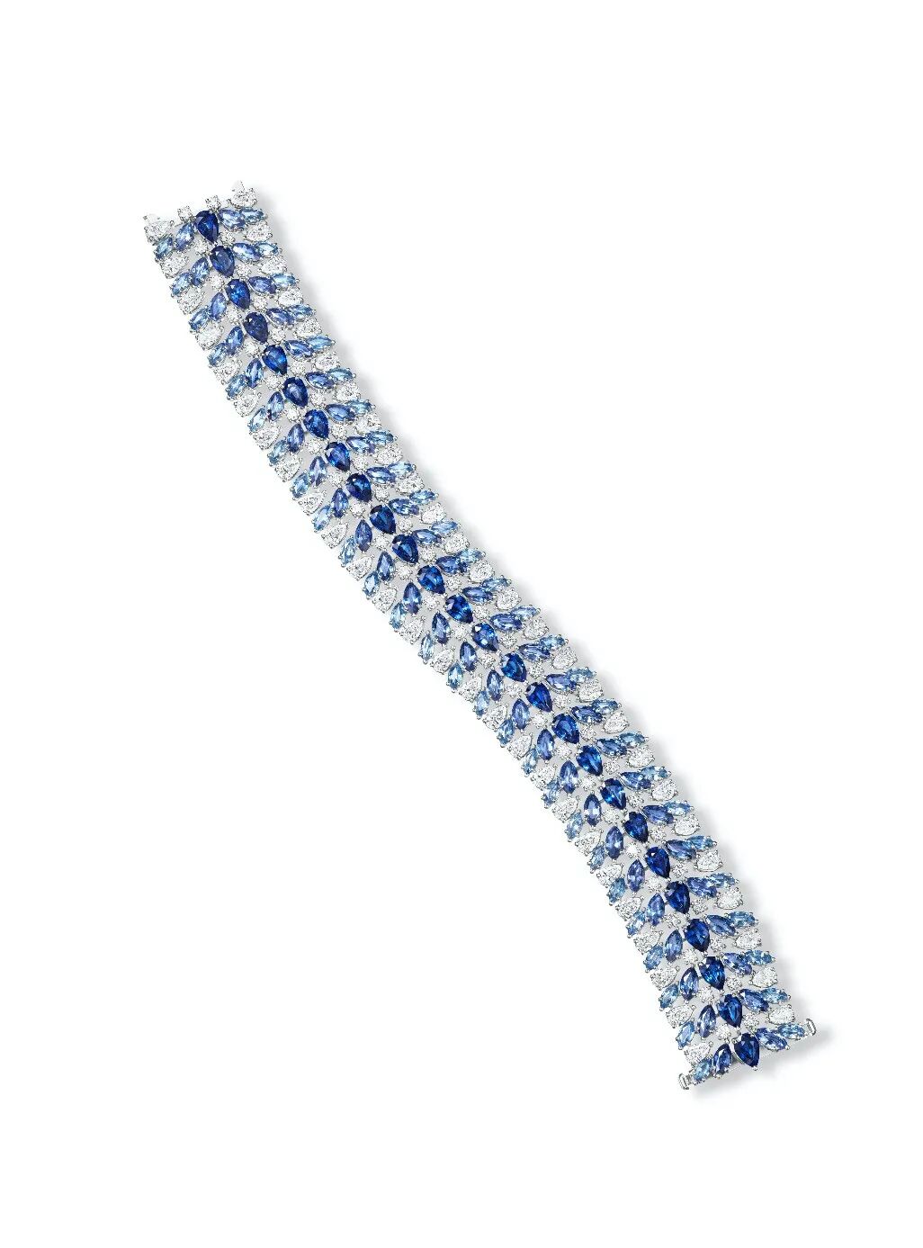 Blue Python高级珠宝套装的灵感就来自于此,项链、耳环、手链和高级珠宝腕表,设计师让优雅灵动的氛围萦绕其中,让你随时感受陆地生物的灵性。栖居于热带、亚热带,象征着财富与神秘的蟒蛇盘旋于手上、颈间,钻石和不同色调的蓝宝石交相辉映,复刻出宛若蟒蛇原本的优美纹理。