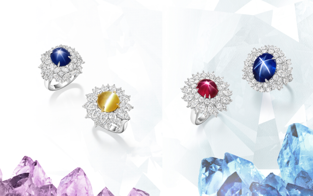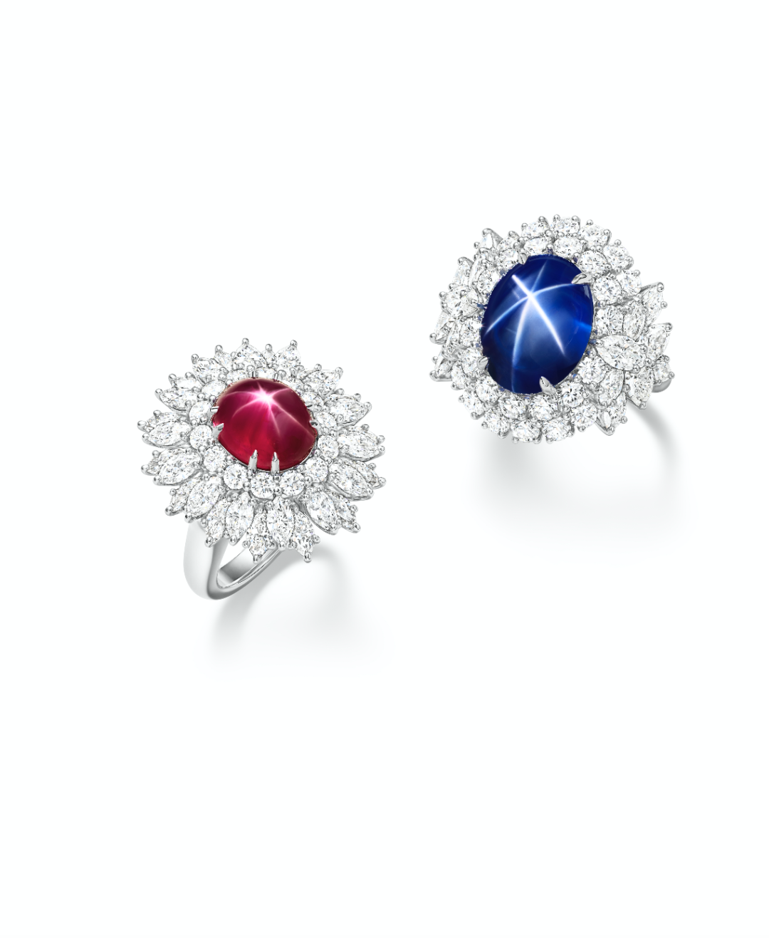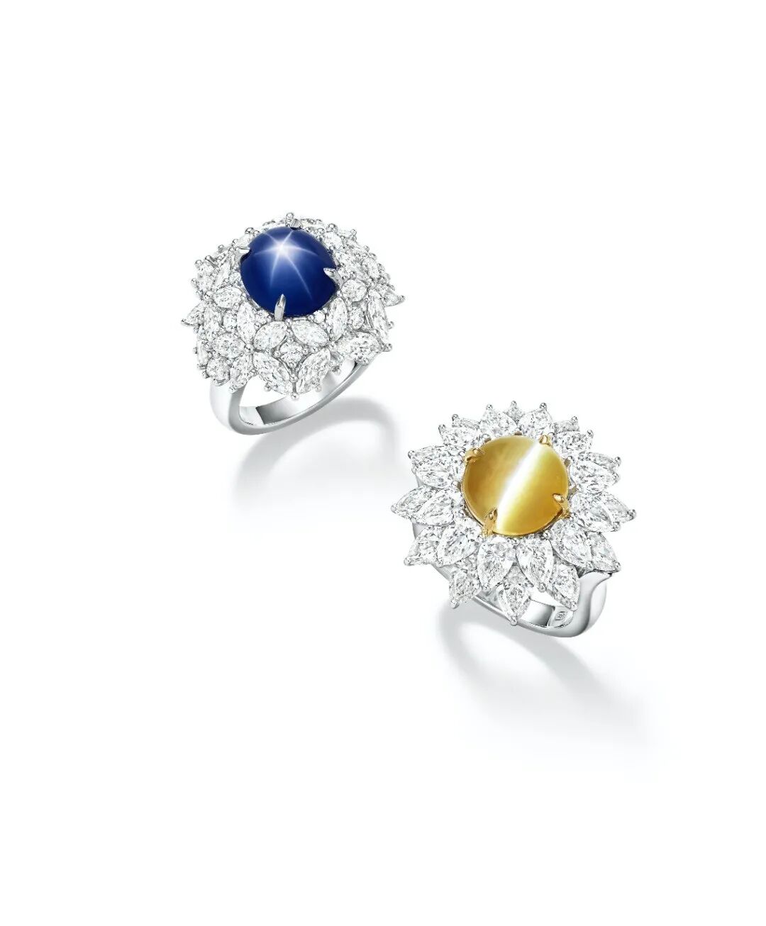 身处于展览现场,你能够轻易感受到大自然的魅力与玄妙,珍藏的自然灵力让人流连忘返。在充满未知的地球深处,我们总是会赋予这里最神秘的想象。而有着在宝石中十分罕见的“星光效应(asterism)”的迷人现象的星光宝石,便来自于此。在光的照射下,星光宝石的表面显现出犹如繁星般的图案,绚丽而惊艳,由于它独特的外表,古往今来,在不同的文化背景中,星光宝石都被给予了有关命运、信仰和希望的象征意义。Harry Winston海瑞温斯顿便选择了这块大自然的奇妙宝藏,作为打造Marvelous Creations系列珠宝的基石。品牌的专家团队运用精湛的技艺和充满创意的设计,令华美绚丽的珍贵宝石变得更加栩栩如生。一颗4.91克拉的星光红宝石置于一圈闪耀的圆形明亮式切工与榄尖形切工的钻石中央;一颗7.60克拉的猫眼金绿宝石则点缀于水滴形切工钻石构成的精美花瓣之上。