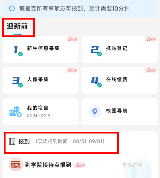 ②为了确保新生的报到过程顺利、高效,请仔细阅读以下说明,并提前做好准备(备注:填报完所有事项方可现场报到)。