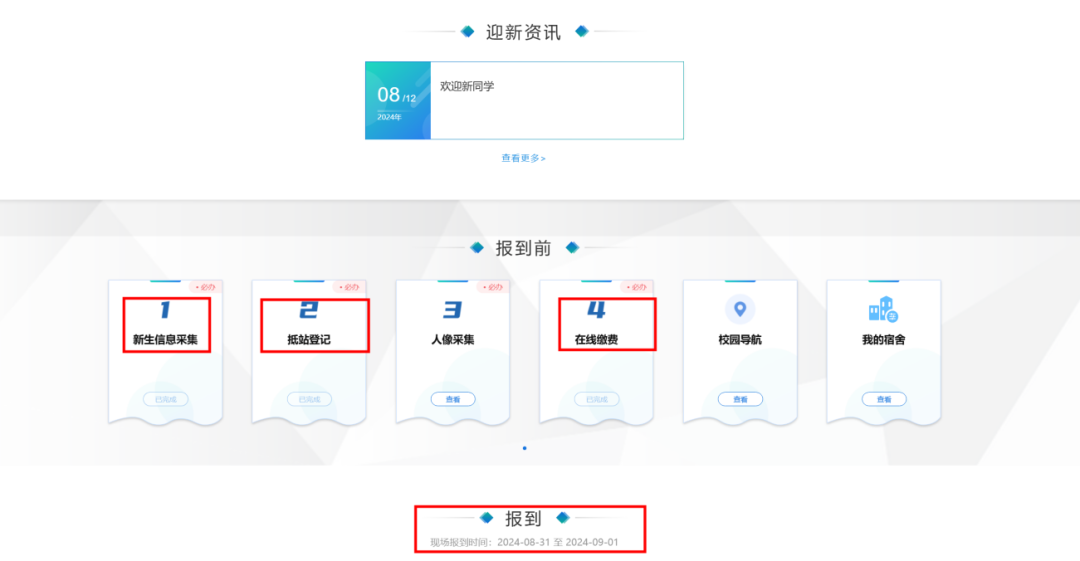 ②电脑端支持“新生信息采集”“抵站登记”“在线缴费”填报(注:人像采集需在移动端完成)。