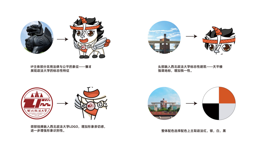 法小豸的原型是中国古代神话传说中的獬豸(xie zhi)。它能辨是非曲直,能识善恶忠奸,又有神羊之称。它是勇猛、公正的象征,是司法“正大光明”“光明天下”的象征。代表了西法大八十五年来在法治领域的勤恳开拓、不懈追求。