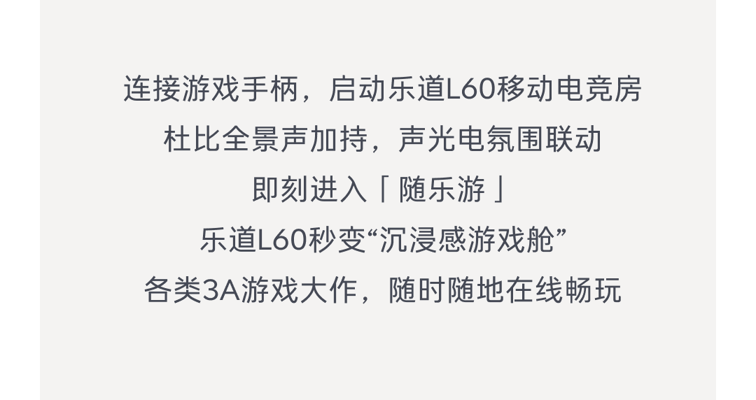 合集文章-《乐道L60提车必玩|玩家已就位,解锁你的「移动电竞房」》