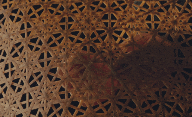 本次为 Burberry 创作的蛇年艺术装置,从基础的竹编技艺角度区分,钱利淮选择了三种不同的竹丝平面构型,以平行等宽双竹丝构成的等边三角形镂空六边形结构、以单线竹丝组合穿插的六边形六角星结构以及模仿 Burberry 经典格纹图案的横纵经纬式结构。这是钱利淮考虑到后续空间塑形的表面稳定性问题,经过多番尝试后最终选择的,不过这几种构型在他的技艺“工具箱”里,只能算是“沧海一粟”。曾经有工艺研究者认为,中国传统的竹编工艺可以完成的平面图案大约有240种。但钱利淮通过研究和实践证明了这种统计并不准确,按照他的说法,竹编的图案可能性趋近于无限。以现代工业设计的逻辑,钱利淮将传统竹编分成了放射性、绞丝、经纬、十字、三角形、多边形、菱形等七个大类,这些大类的基础构型和基本衍生编织方式,被他依次陈列在办公室的墙上。按照他的理论,仅仅是通过这些不同编织大类的排列组合,其衍生的图案就已经不可统计;更何况在具体的艺术创作层面,还可以改变具体竹丝的粗细、颜色、组合方式等,涉及 7 个大类基础上的 8 个变量。“而且,在这些大类的基础上,还可以分出小类,每一个小类都有差距,都有它特殊的变化规则。因此,竹编的图案趋近于无限,并不是夸张的说法。”
