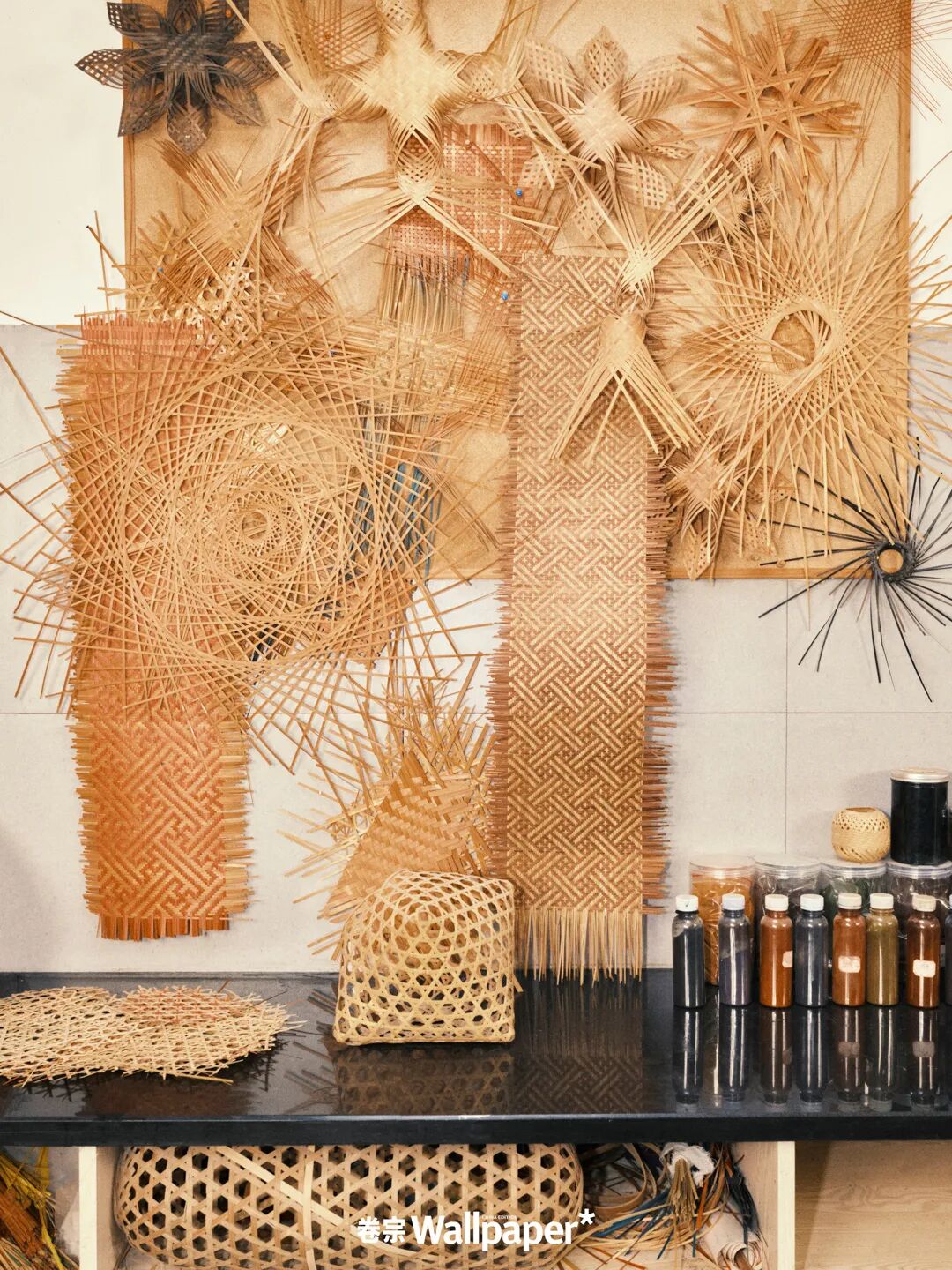 带着这样的期待,钱利淮开始了从头梳理竹编技艺的工作。在过去,竹编技艺依靠个体经验代代相传,每一个细分都仅存在于具体的竹编匠人手中;而钱利淮有着工业设计的专业背景,因此能够很好地从现代的更加全局的视角出发,按照工业制成的逻辑重新整理竹编的呈现方式,这也就有了如今他在办公室墙上的呈现,这便是由他发明的,现代竹编的知识体系。“我开始想做创意的时候,我发现自己不知道怎么去做。于是我只好绕了一个大圈子,差不多从 2018 年一直做到 2020 年,去做这个整套的系统。那几年里我几乎就完全封闭,手机信息都不回复的。”