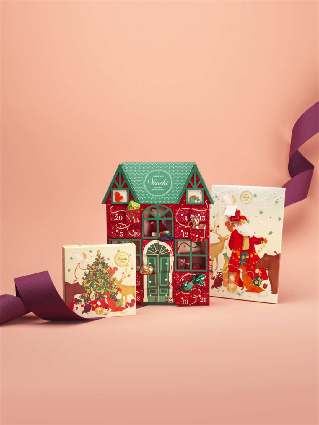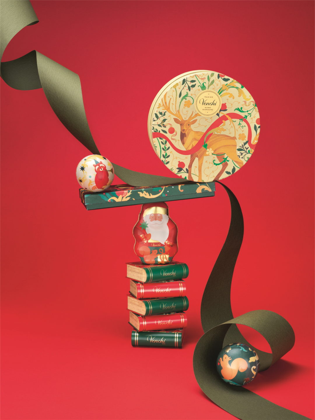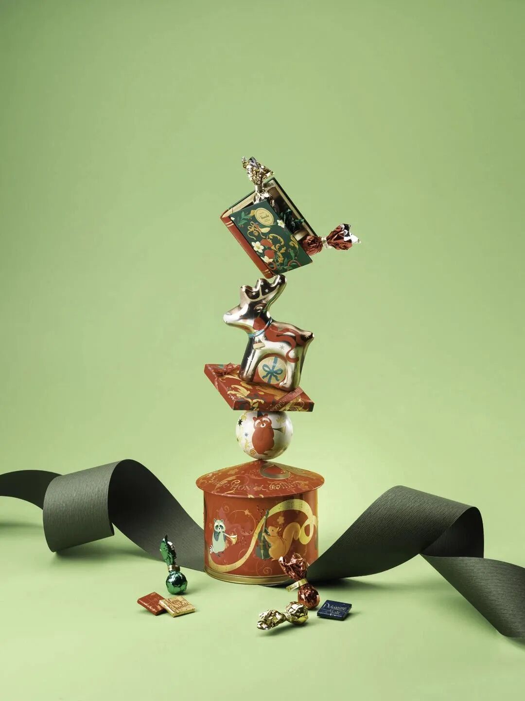 Venchi 2022限定巧克力音乐铁盒 这款礼盒以红色和金色为背景,描绘了可爱的小动物们欢乐地在一起庆祝节日。您想听听他们演奏的美妙节日歌曲吗?请按照底部指示箭头,轻轻旋转礼盒底部链环,可自动演奏。与带您回到童话世界。礼盒内精选了46颗 Venchi 节日巧克力,适合与家人分享,陪伴您共度甜蜜节日。