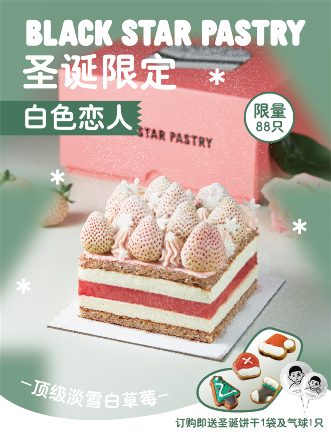 此次,Black Star Pastry独创明星产品 – 悉瓜®蛋糕首次迎来冬日焕新,推出【白色恋人】和【粉色絮语】两个圣诞升级新版本。【白色恋人】版悉瓜®蛋糕:是表达纯挚爱意的心动之选。【粉色絮语】版悉瓜®蛋糕:是表达无与伦比的浪漫。