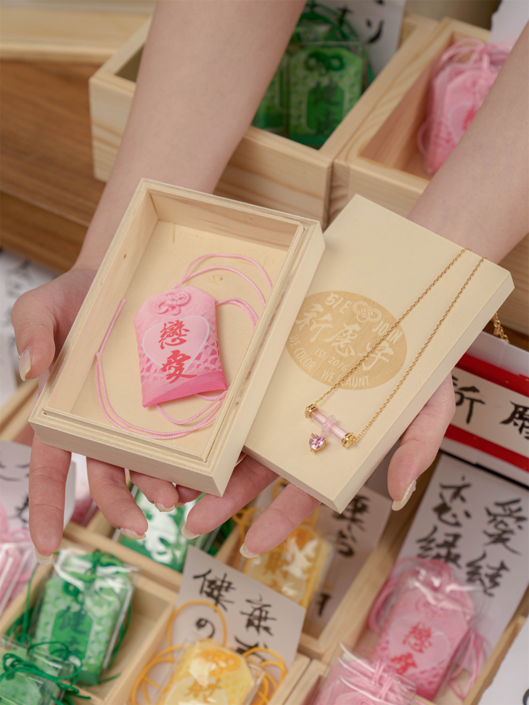除了将期盼之情视觉化外,51 E JOHN 更是带来了可以帮助“实现”愿望的护身符首饰。设计师借助水晶这种能量物品做成了“祈福筒”。不同颜色的水晶和不同形状的宝石象征着不同的愿望。