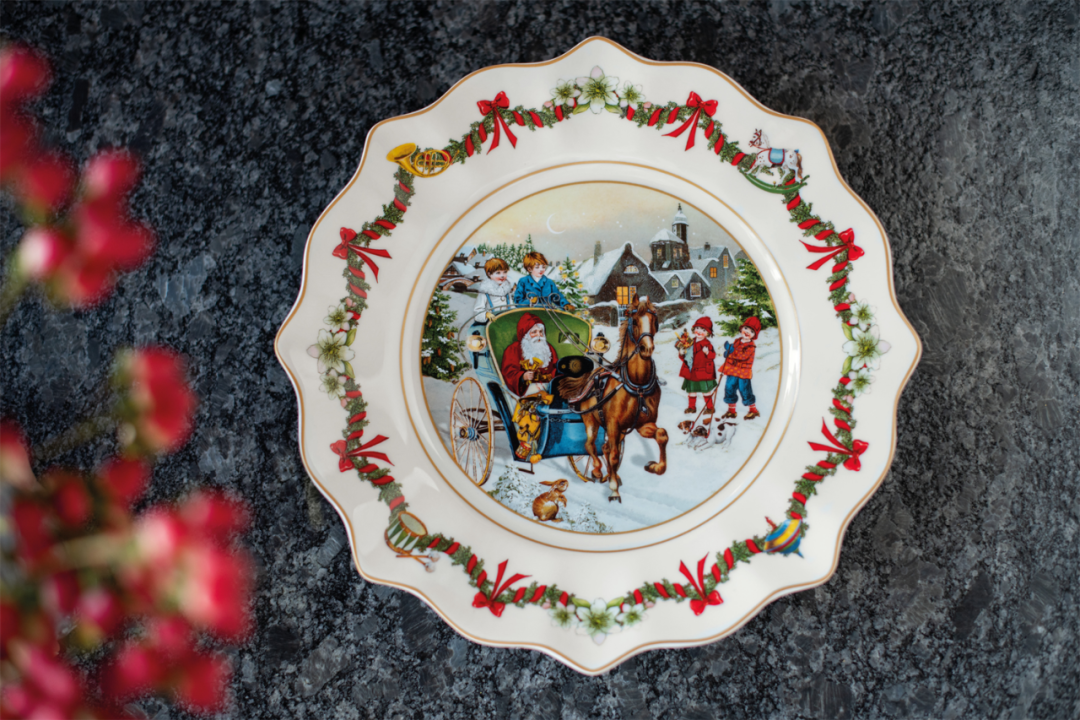 Annual Christmas Edition|圣诞纪念版 通过数字化技术,将经典隽永的装饰画绘制于纯白骨瓷之上,底部更印有金色邮票,每年都吸引着来自世界各地的收藏家们。