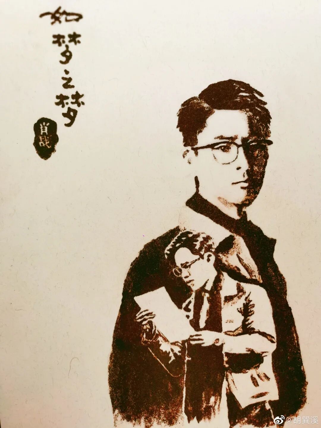 这三幅画作,历时两个多月,通过收集咖啡渣,再融合废纸,做成咖啡渣再生纸涂鸦而来。