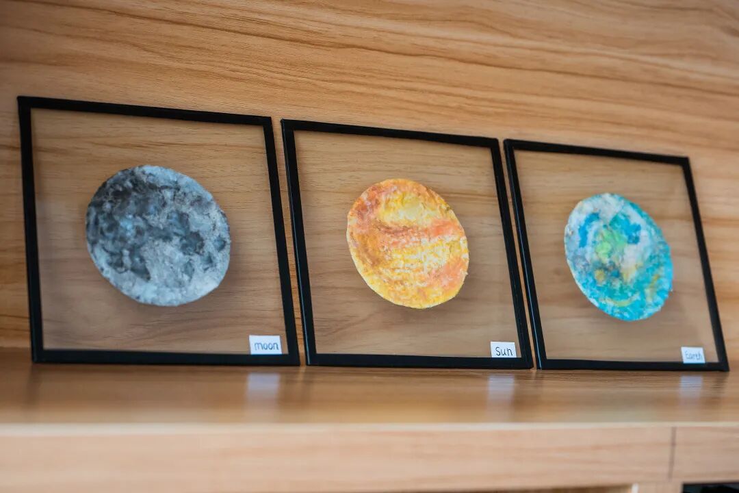 和书签一同寄来的,还有通通手作的星球画——“月亮是最浪漫的存在,地球是我们的家,太阳是光明与希望。”