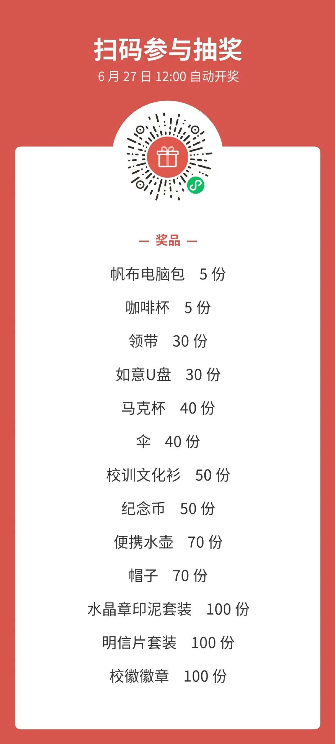注意事项:毕业礼物不支持邮寄,请中奖同学在规定时间内前往领奖处领奖