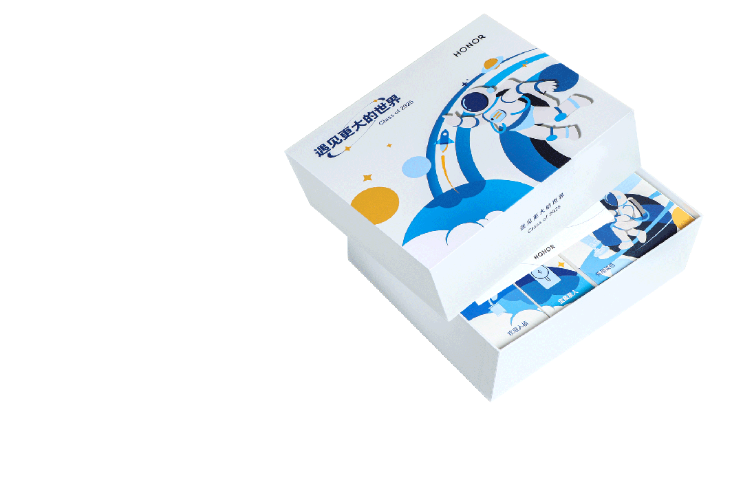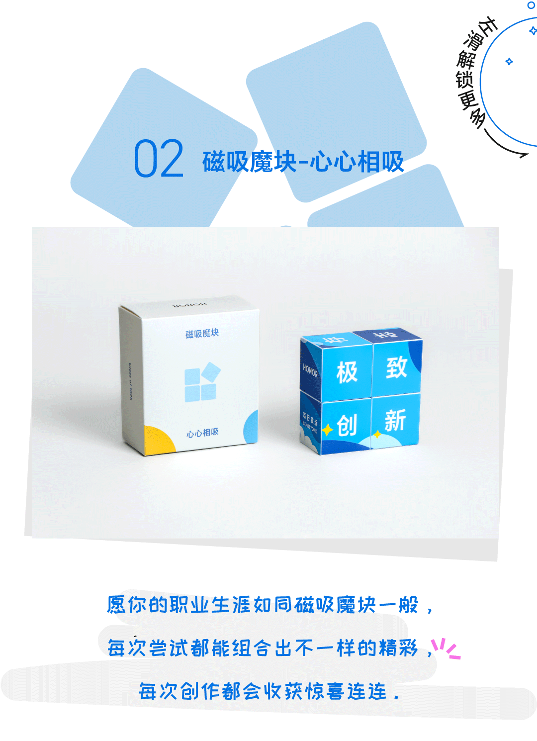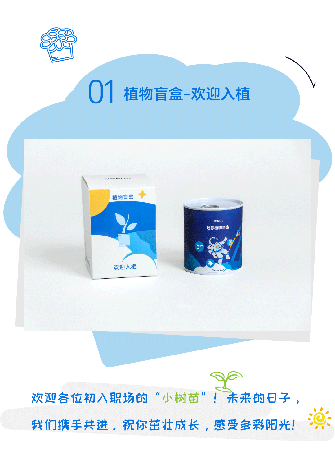 推荐:「点击切换后展开」荣耀针对2025届校招签约新同学发布的校招礼盒,「左滑」还展示了礼盒包含植物盲盒、磁吸魔块、保温杯、鼠标垫、充电宝、手机支架等物品及其寓意,借此宣传校招礼盒。